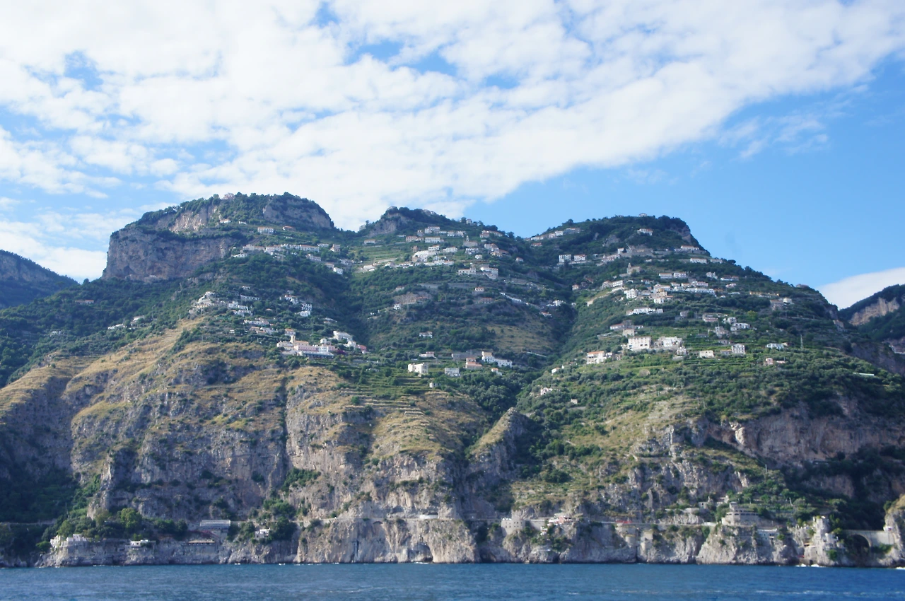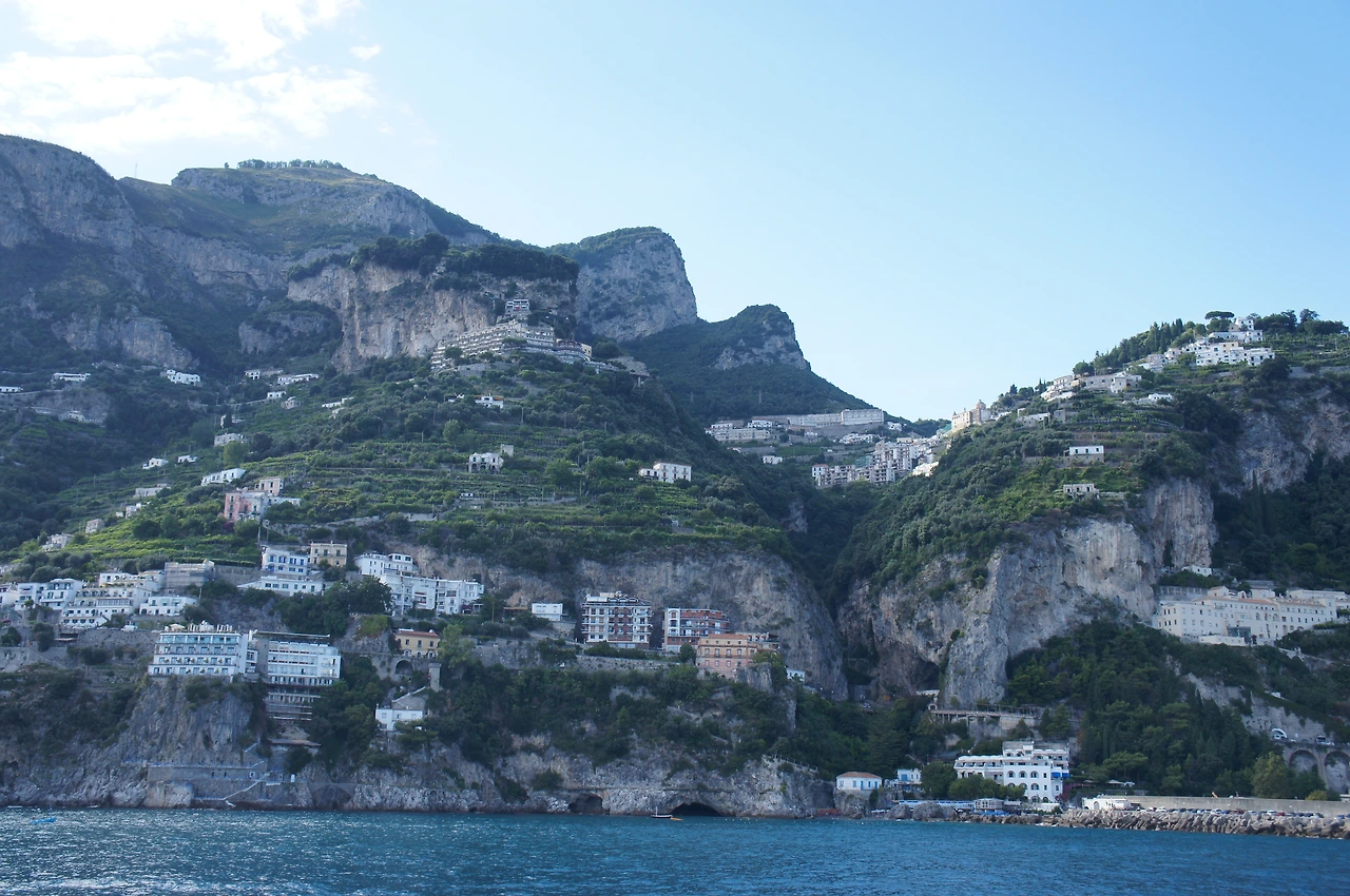 아말피 해안 절벽을 따라 즐비한 집들.