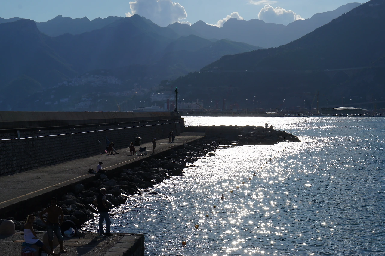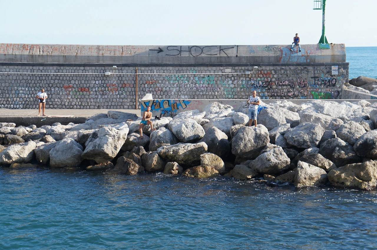 배는 살레르노 항에 도착했다. 한국과 비슷하게 방파제에는 낚시하는 사람들로 붐빈다.