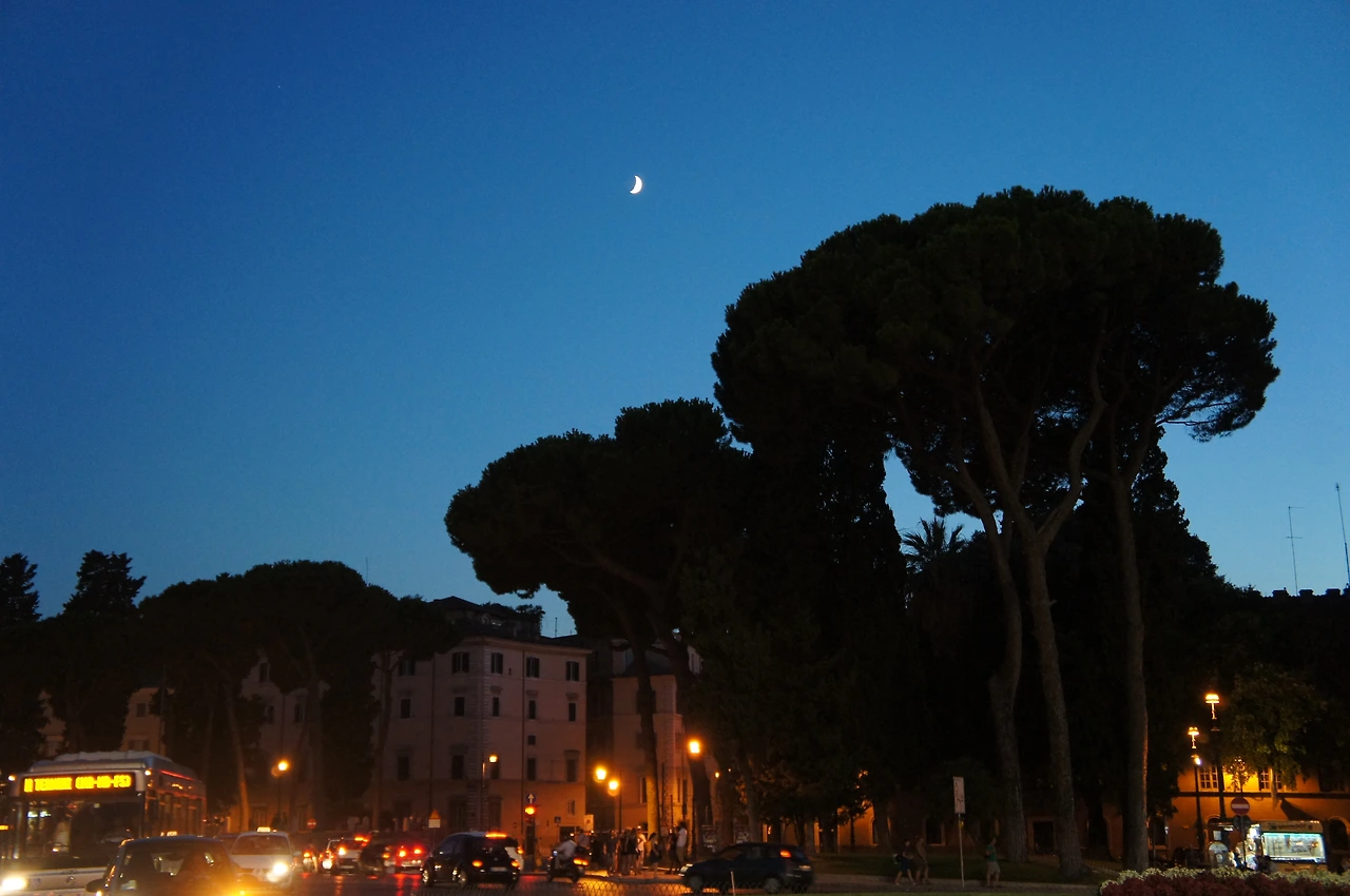 로마의 하늘 위로 떠오른 초승달님.