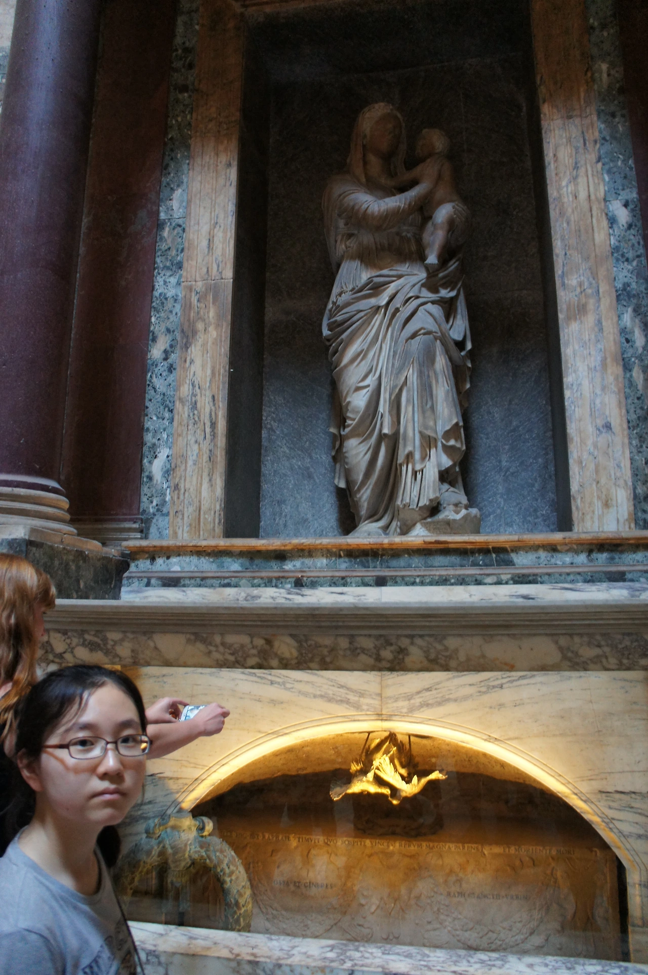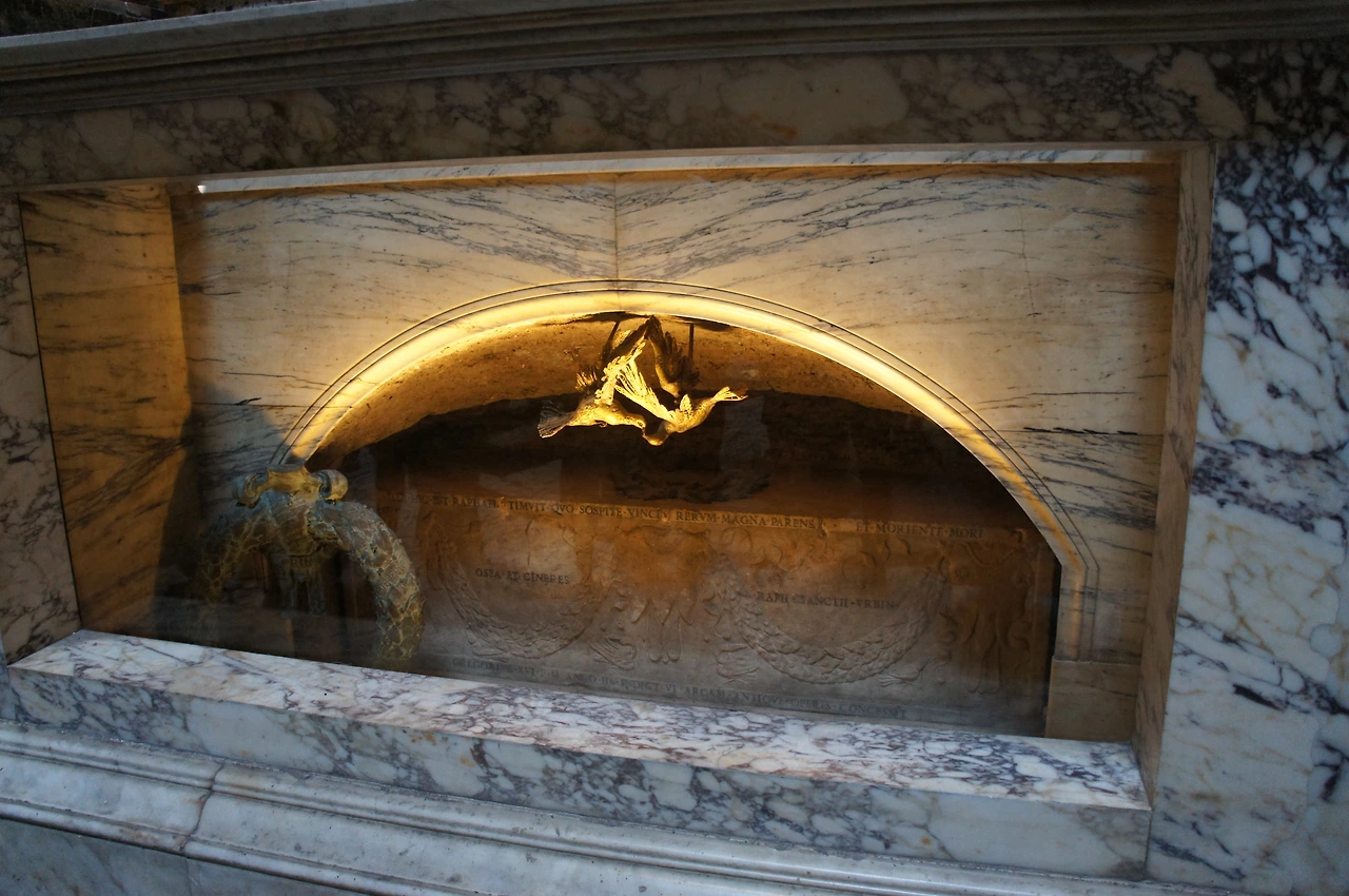 미켈란젤로, 레오나르도 다빈치와 함께 거장으로 불리는 라파엘로의 무덤이 있는 곳이 바로 판테온이기도 하다. 판테온에 묻히는 것이 소원이라던 그의 바램이 이뤄져 판테온에 영면해 있는 그의 무덤 위에 로렌조가 조각한 바위의 성모상이 그의 넋을 기리고 있다.