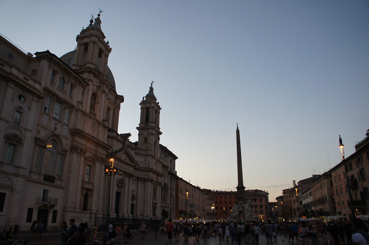 길거리 공연이 펼쳐지는 흥겨운 나보나 광장에 서서히 어둠이 내린다.