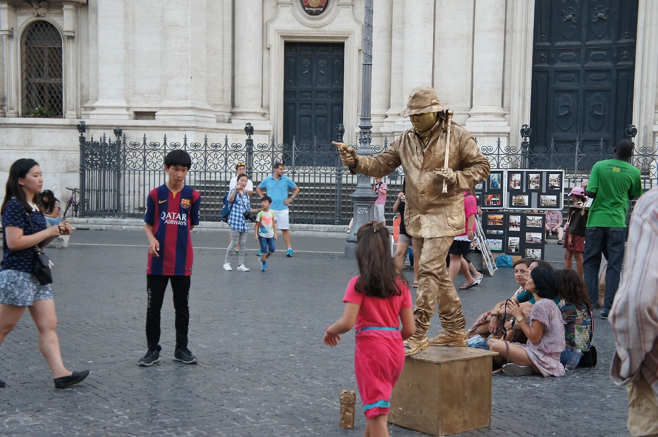 얼핏 보면 동상 같지만, 동전을 넣어주면 포즈를 취해준다.