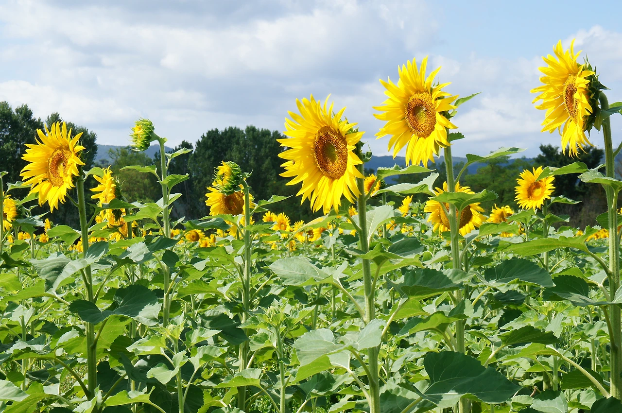 해바라기를 배경으로 사진을 찍고 싶은데 다 등을 돌리고 있는 해바라기들...