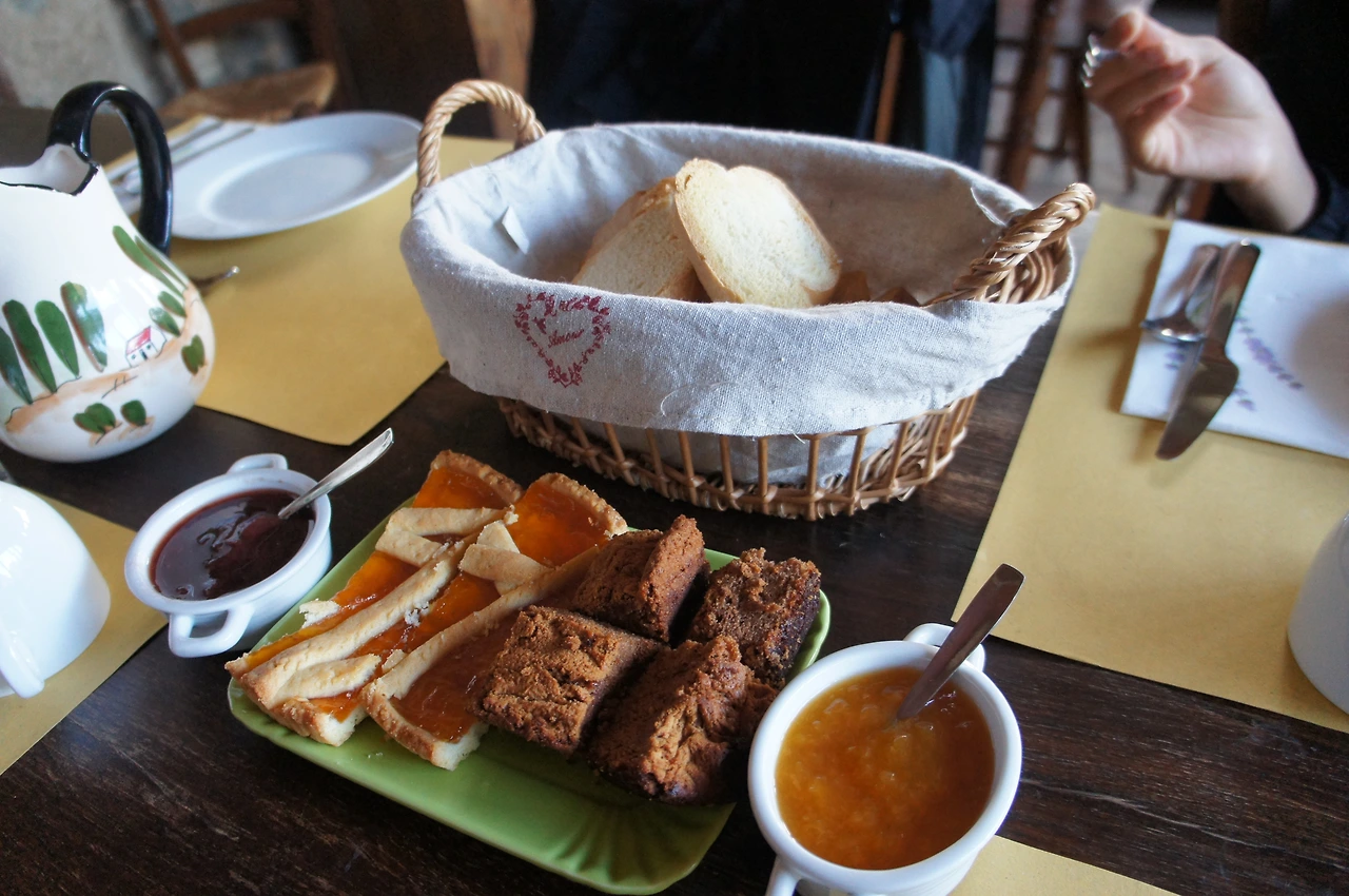 어제 저녁에 식사를 했던 곳으로 내려가니 갓 구운 신선한 빵과 직접 담근 쨈으로 아침을 먹을 수 있었다.
