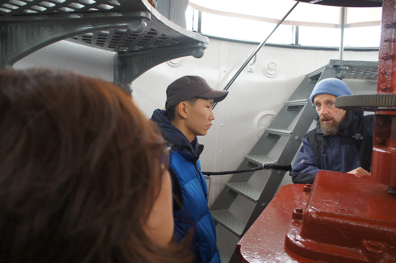 가이드와 함께 등대 꼭대기로 올라가 설명을 듣는다.
