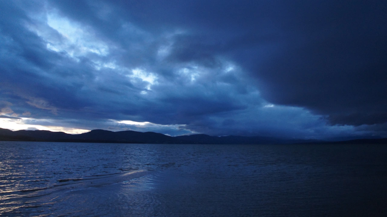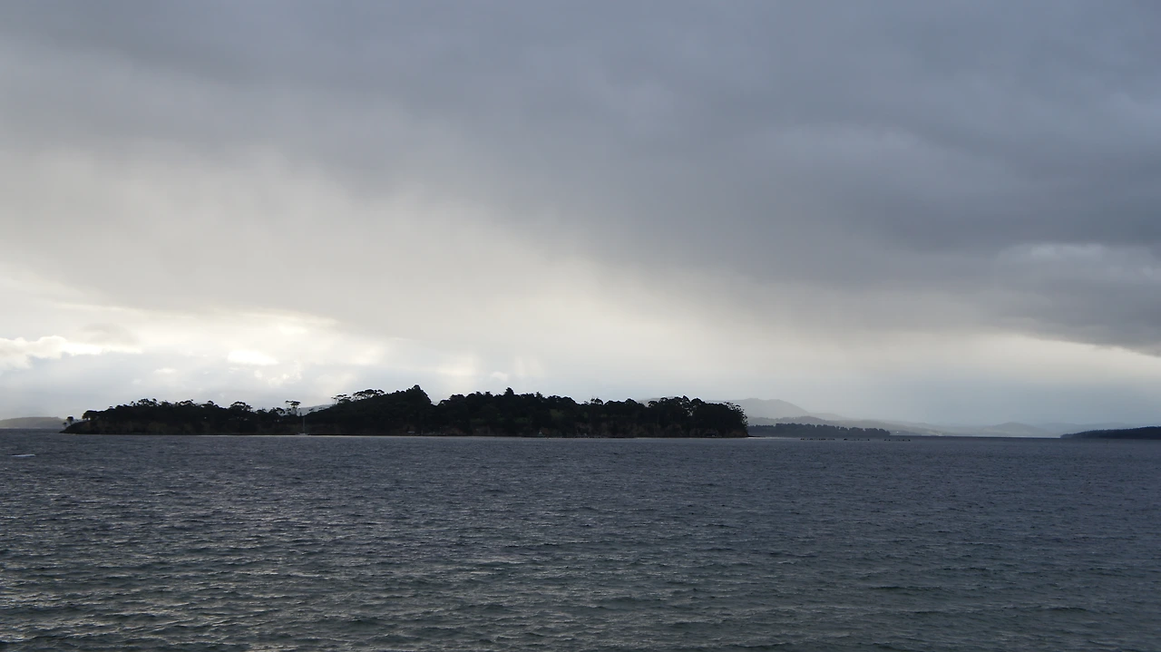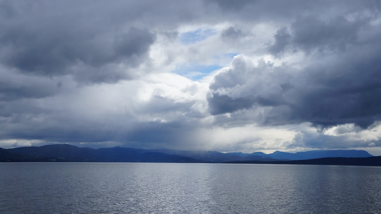 The Neck Lookout 주차장으로 내려와 차를 타려는데 저 멀리 보이는 남섬 어딘가에는 소나기가 내리고 있다.