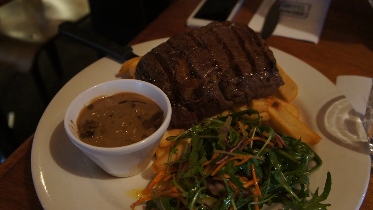 차를 몰아 The Neck Lookout 쪽으로 가는 도중, 저녁식사 시간이 되어 길가의 레스토랑으로 들어간다.