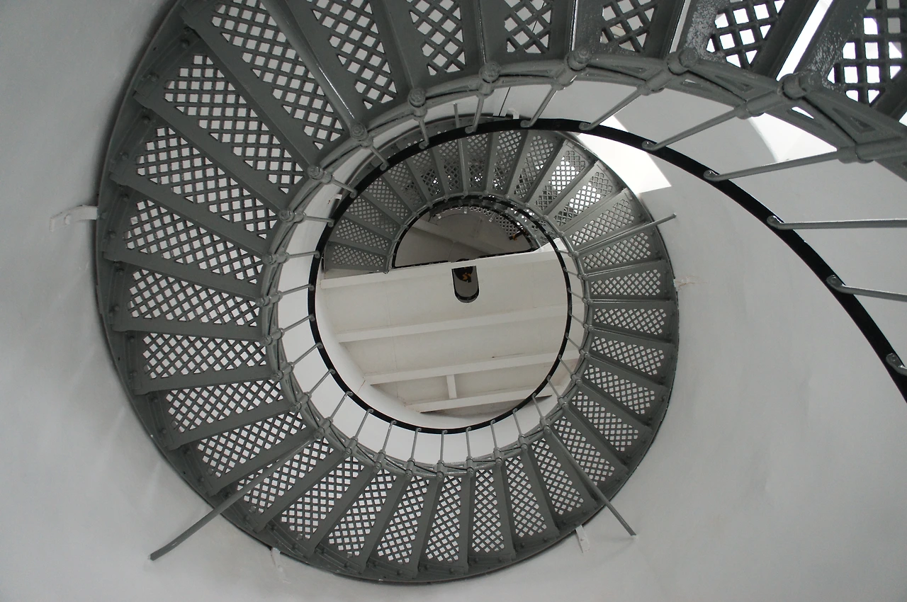 등대 내부에서 위로 올려다보니 나선형 계단이 저 꼭대기까지 빙빙 돌며 닿아 있다.