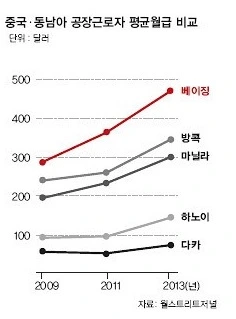 < 중국 동남아 공장 근로자 평균 월급 변화 > (출처 : 구글 이미지)