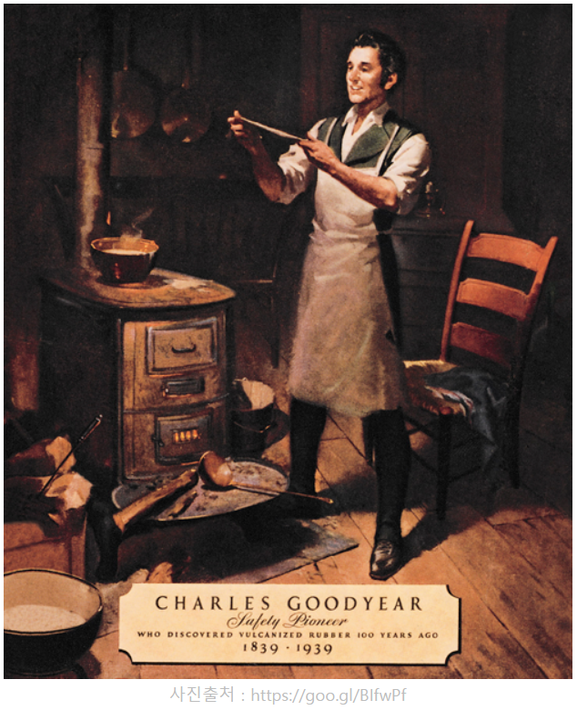 1841년 미국의 찰스 굿이어라는 화학자가 추운 겨울날 무심코 유황을 섞은 고무를 난로위에 올려놓고 외출했다 돌아와보니 탄성과 내구성이 강한 고무로 변해있었다. 이것이 굿이어가 발명한 타이어였다. 굳이어 타이어Goodyear Tire가 탄생했다. 굳이어가 타이어를 대량 생산하면서 고무를 많이 필요로 했다. 벤츠와 포드가 자동차를 많이 팔릴수록 고무 수요도 폭증했다. 그때는 고무는 아마존에서만 생산되었으니 가격이 비쌌다. 그러니 고무 생산 플랜테이션이 우후죽순으로 생겨났고, 유럽인들이 돈을 벌기 위해 아마존에 들어왔다. 외부 간섭 없이 독립적으로 살았던 소도 인디오들이 유럽인이 들어오자 순식간에 노예로 전락했다. 다이노의 한 부류인 그들도 굴종하지 않아 항쟁했다. 붙잡혀 처형당했거나 노예로 팔렸고, 쇠사슬에 발목을 묶여 고무나무 플랜테이션에서 죽었다. 벨기에가 식민지 삼은 콩고에서는 고무 플랜테이션에서 엄청난 아프리카인들이 죽거나 손발이 잘렸다. 가나안 족속을 모두 진멸시켜 버린 기독교 신은 그 뜻을 하늘에서 이룬 것처럼 아마존의 땅에서도 이루었다. 그 신은 소도의 천재적인 화학자들도 관용하지 않았다.