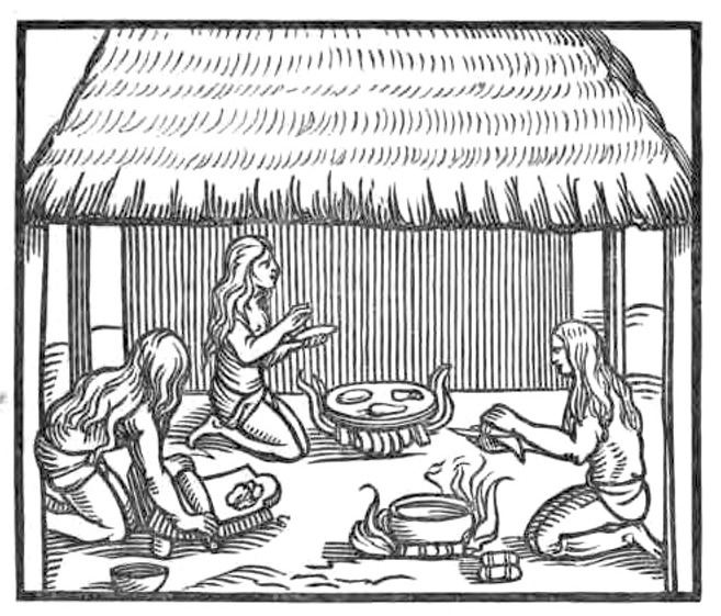 다이노 여자들은 돌확을 앞에 두고 양지바른 앞마당에 둘러앉았다. 유가 껍데기를 벗겨내고 오목한 돌확에 담고 손안에 부듯하게 잡히는 굵은 돌을 돌려 부드럽게 갈면 고운 가루가 되었다. 그런 다음 대왕 야자 잎을 말려 만든 야과yagua라는 망에 걸러 고운 가루만 걸러낸다. 돌확으로 다이노들도 유가를 빻았다. 지구 반대편의 두 돌확은 생김도 같고 다루는 요령도 같다. 빻아진 가루를 야자수 잎으로 만든 자루에 담근 채 물에 여러 날 담가 우려낸다. 그러면 유가에 들어있는 타닌 성분을 제거할 수 있다. 땡감을 오래 물에 담가둬 떫은맛을 빼는 것과 같은 이치다. 독성을 제거하는 방법을 알아야만 탄수화물을 섭취할 수 있었다.