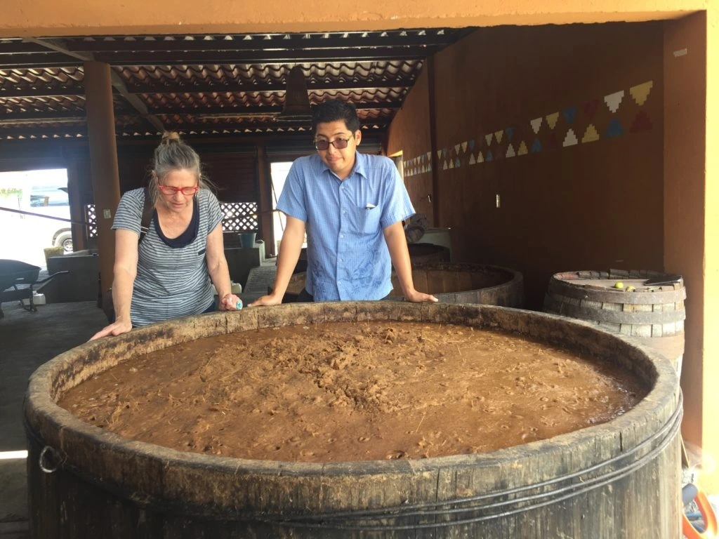 + 맷들로 아가배를 갈아 가루로 만든 뒤 반죽한 메주갈mazcal을 숙성 발효해 멕시코 전통주를 만들고 있다.