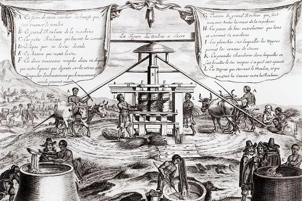 사탕수수를 기계로 눌러 쥐어짜면 단물이 나왔다. 즙을 불로 끓이고 달이면 조청 상태를 거쳐 설탕이 되었다. 추출액을 증산할 수 있는 압착 기술이 발명되자 설탕 플랜테이션이 대거 늘어났다. 기술의 발달로 오히려 노예가 늘었다. 노예들을 하루 5시간만 재웠다. 플랜테이션 농장마다 200~300명의 노예가 있었다. 해마다 10% 정도의 노예가 죽었다. 농장주들은 플랜테이션에 여성 노예를 들이지 않았다. 햇빛을 받아 눈부시게 흰 백인 농장주 저택에는 부엌 살림할 피부 검은 여자 노예 몇이 있었다. 플랜테이션에 어린아이들이라고는 3~4명 정도뿐이었다. 성비 불균형은 노예가 자연 증가할 수 없는 이유였다. 우기가 끝나는 11월부터 우기가 새로 시작하는 5월까지 건기가 노예들에게는 가장 두려운 시기다. 이 시기를 견뎌내는 힘은 오직 지금, 이 순간만 생각하는 흑인들의 독특한 심성에서 나왔다. 그런 생각이 지옥의 노동을 견디게 했다. 농사철이 지나면 노동강도가 한결 줄어들었다. 들판의 풀을 베고 산을 벌목하여 땔감을 끌어오는 따위의 일을 했다.