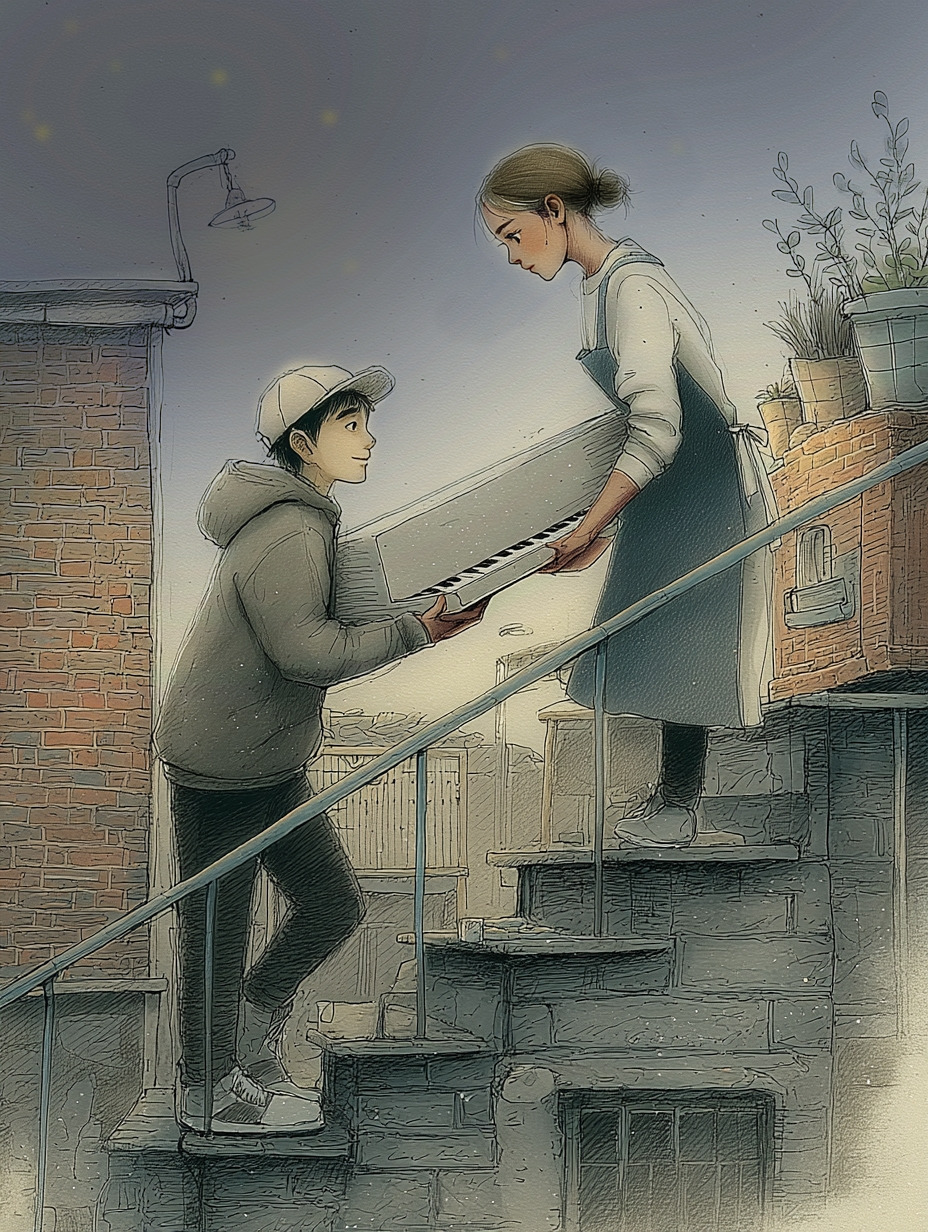 루아의 집은 언덕 중턱, 다가구의 꼭대기 옥탑방이었다. 집옆으로 붙어있는 가파른 철제계단을 따라, 두 사람은 숨을 고르며 피아노를 끌어올렸다.