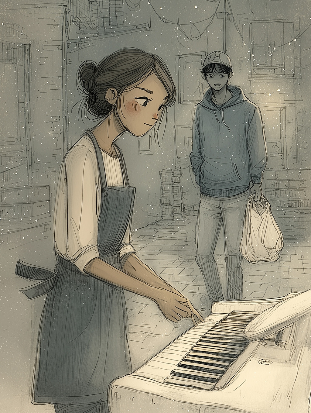 한동안 두 사람은 말없이 피아노를 쳤다. 서툴지만 정직한 음들이 밤공기 사이로 흩어졌다.