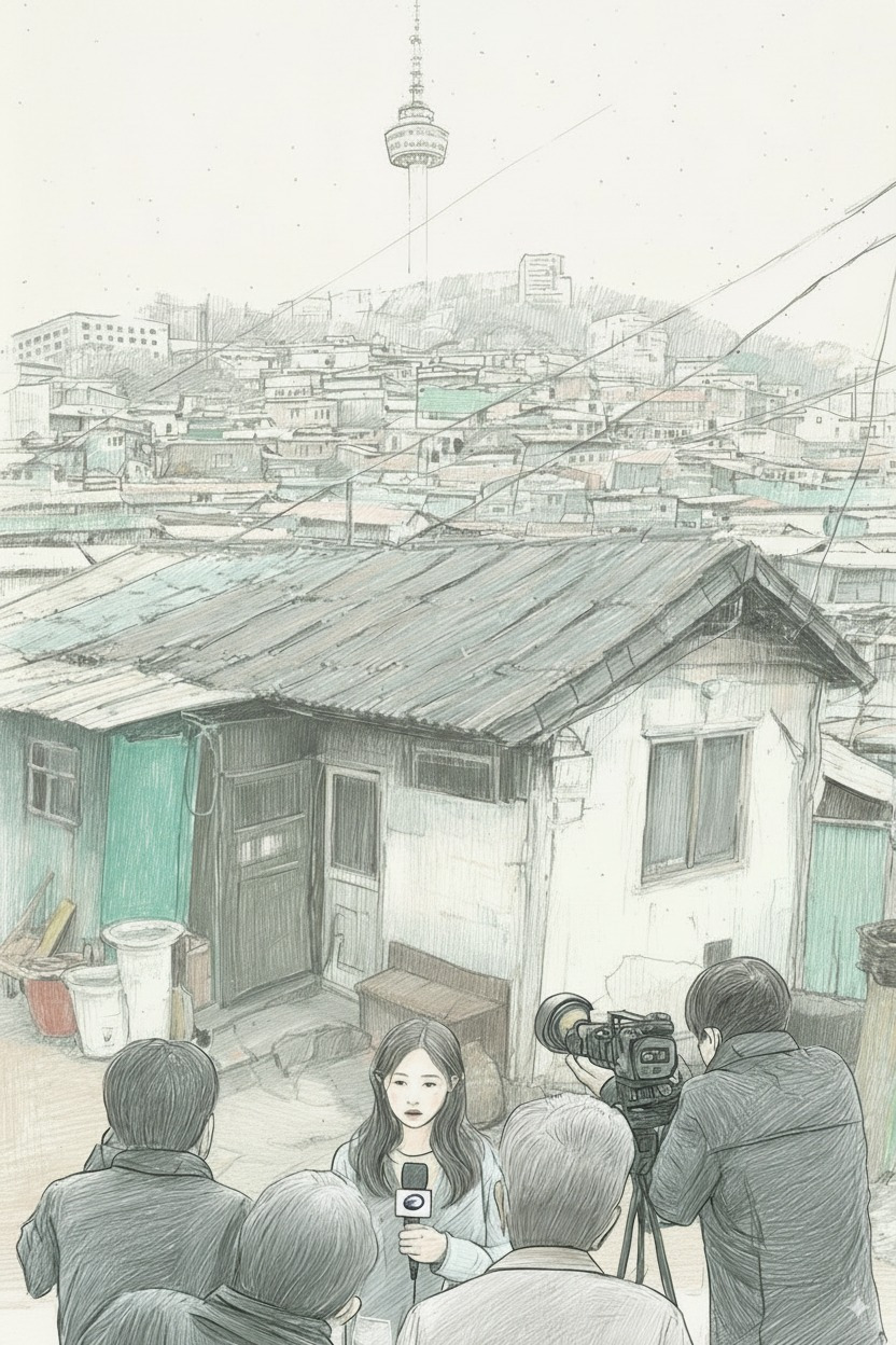 마이크가 골목 어귀마다 불쑥 나타나자, 주민들은 대문을 꼭 닫고 숨죽였다. 창 문틈으로 TV 불빛만 어른거렸다.
