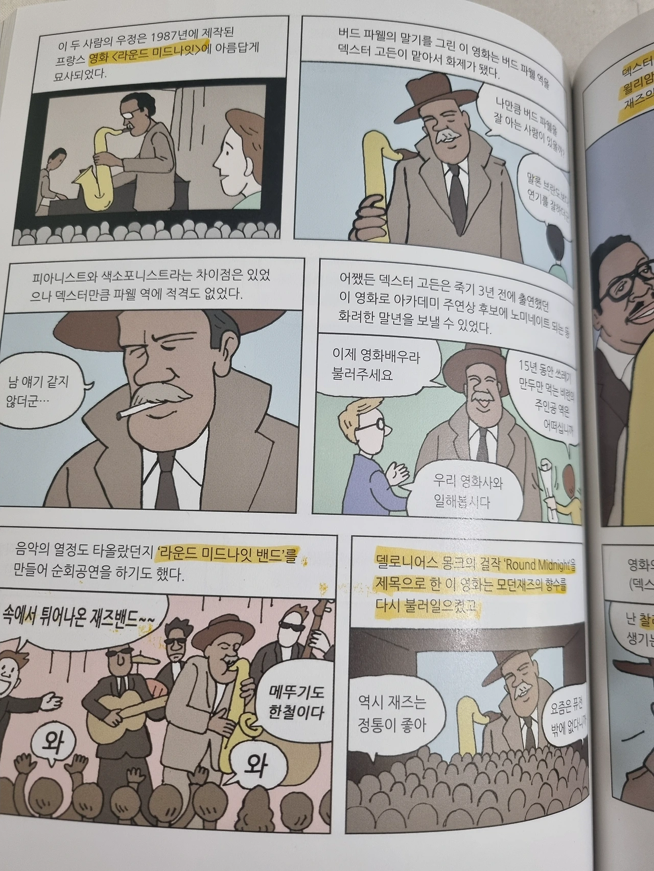 재즈 좋아하시나요? 쓰는 독서 5기에서 <JAZZ IT UP>을 함께 읽었습니다. 그동안 재즈는 자발적으로는 접근하지 못했는데요. 이 책은 방대한 재즈의 발생과 전개, 전성기와 위기, 현대에 이르기까지 만화로 친절하게 알려주어서 즐겁게 잘 읽었습니다. 유튜브로 음악을 찾아가면서 들으니 더 알고 싶어지고 들으면서 선호하는 재즈 뮤지션이 생기더라고요. 유익하고 또 재미있는 시간이었습니다.