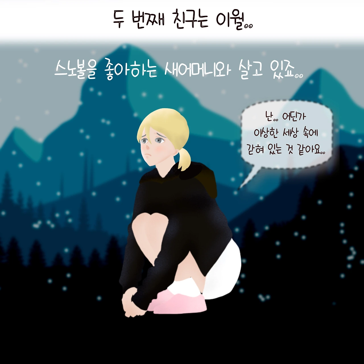 하지만 스노볼로 마음을 다스리는 데엔 한계가 있었고 어느 날 새어머니는 결국 이월만을 남긴 채 생을 마감한다. 이제 혼자 남은 이월은 세상을 마주하며 살아가야 하는데, 그나마 자신을 이해해 주는 사람이 없는 세상은 차갑고 어둡기만 하다.