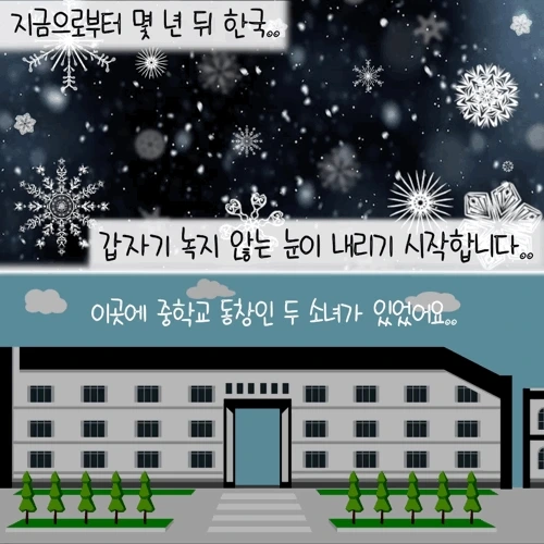 한 소녀는 가난하다. 어머니를 방부제 눈 때문에 잃고 운전일을 하는 이모와 살아간다. 또 다른 소녀는 과거 적당히 부유했었다. 아버지는 유명 연구소 소장이었고 새어머니는 중학교 이사장이었다. 하지만 두 소녀는 갑자기 각자의 소중한 사람을 잃게 된다.