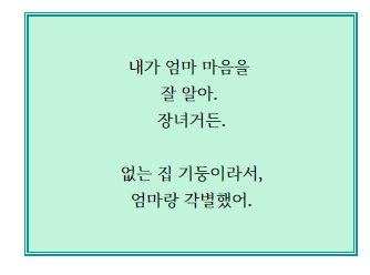 청춘의 초반부터 가장 노릇을 한 큰 딸.