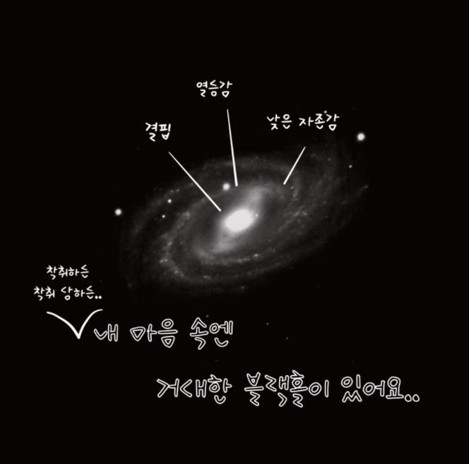 <인간관계 착취>는 사람과 사람 사이. 그 틈에서 벌어지는 착취와 착취당함에 대해 이야기한다. 왜 어떤 사람들은 다른 사람을 착취할까? 그들의 내면엔 거대한 블랙홀이 있다. 온갖 부정적 감정들. 결핍, 열등감, 낮은 자존감 등은 상대를 억압하게 만든다. 자신을 통제할 수 없기 때문에, 문제의 초점을 타인에게 옮겨 타인을 통제하는 것이다.