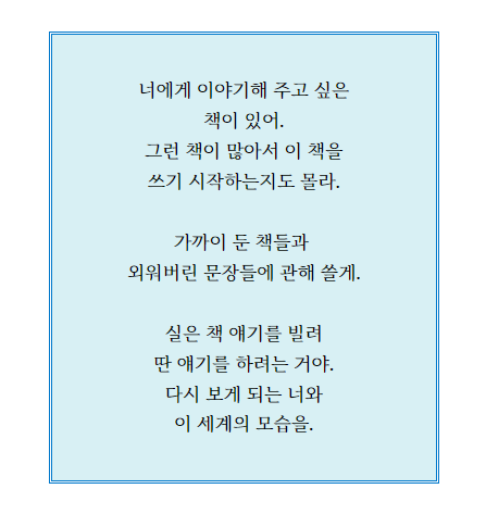 정혜윤 작가의 책들과 비슷한 느낌이었다.