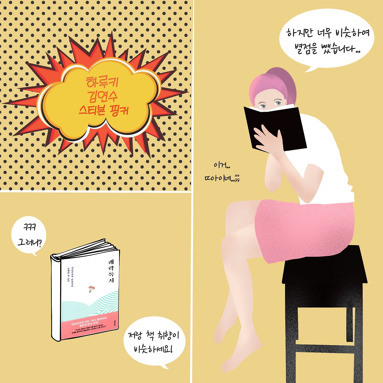 이렇게 재미있는 책 읽기를 지향하는 그이지만, 사실 지금은 그렇게까지 책을 많이 안 읽는다고 한다. TV, 핸드폰에 밀려 책은 3순위라고. (이것 또한 얼마나 인간적인지! ㅋㅋ) 독서의 이유를 거창하게 설명하기보다는, 이렇게 쾌락독서, 재미를 위한 독서를 지향하신다면, 분명히 책은 재밌다. 엄청 재밌다.
