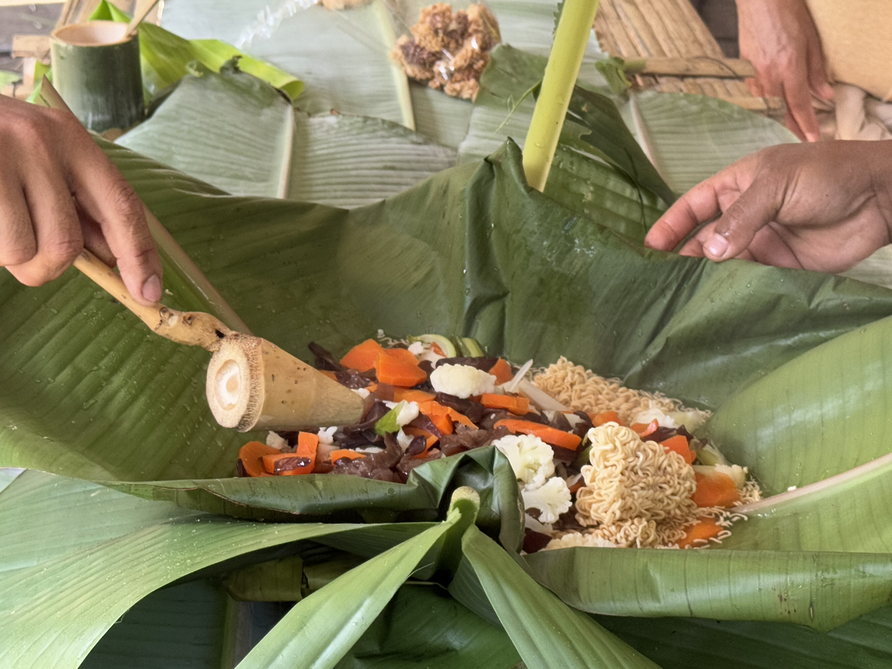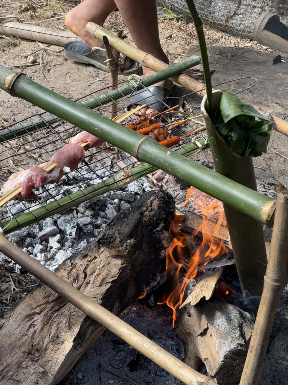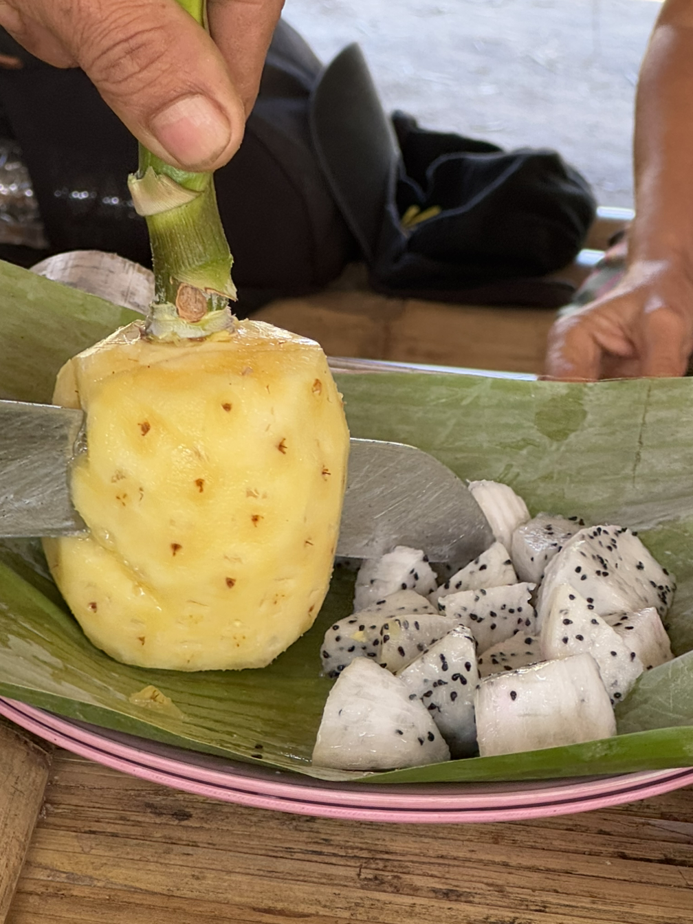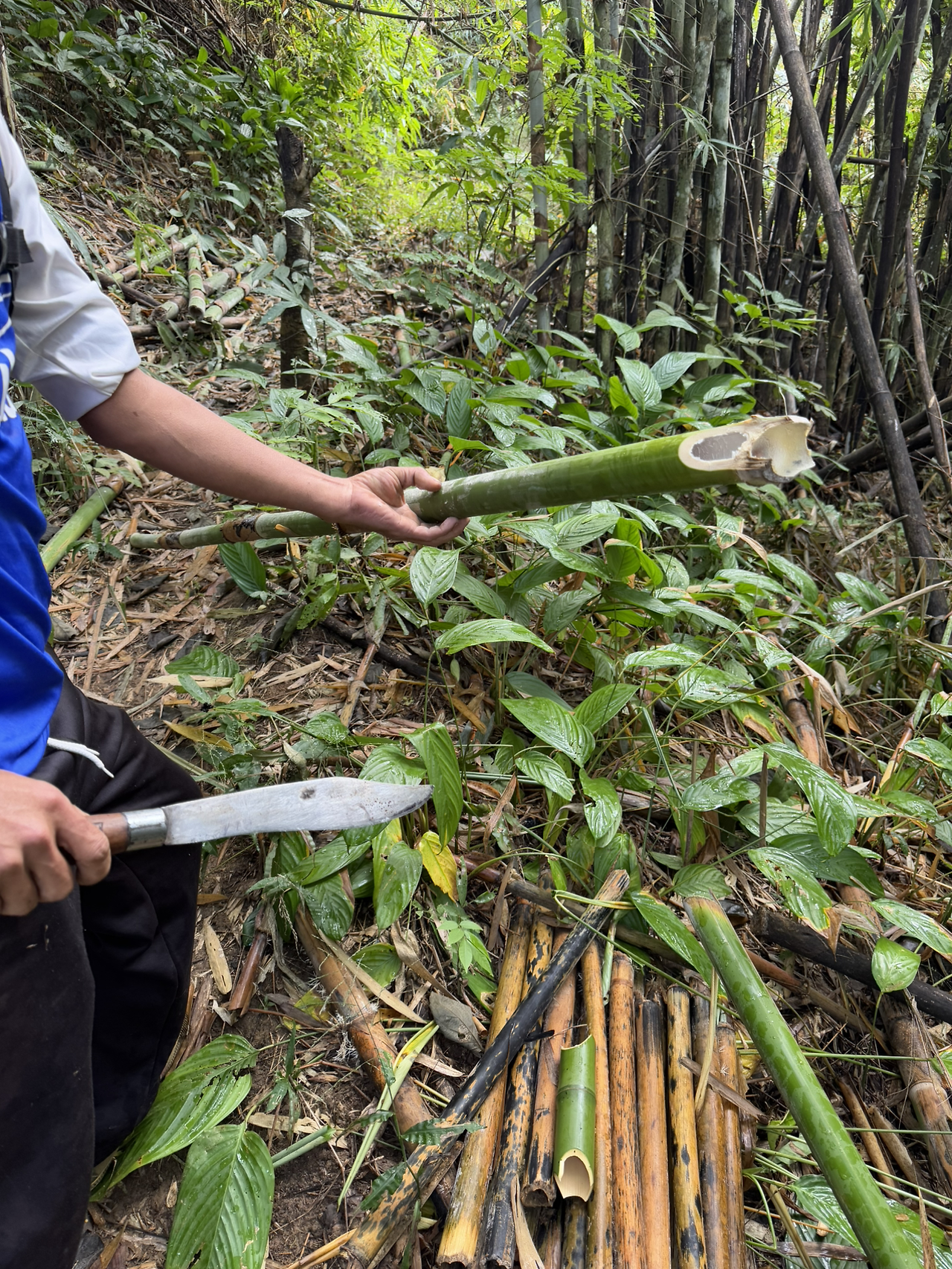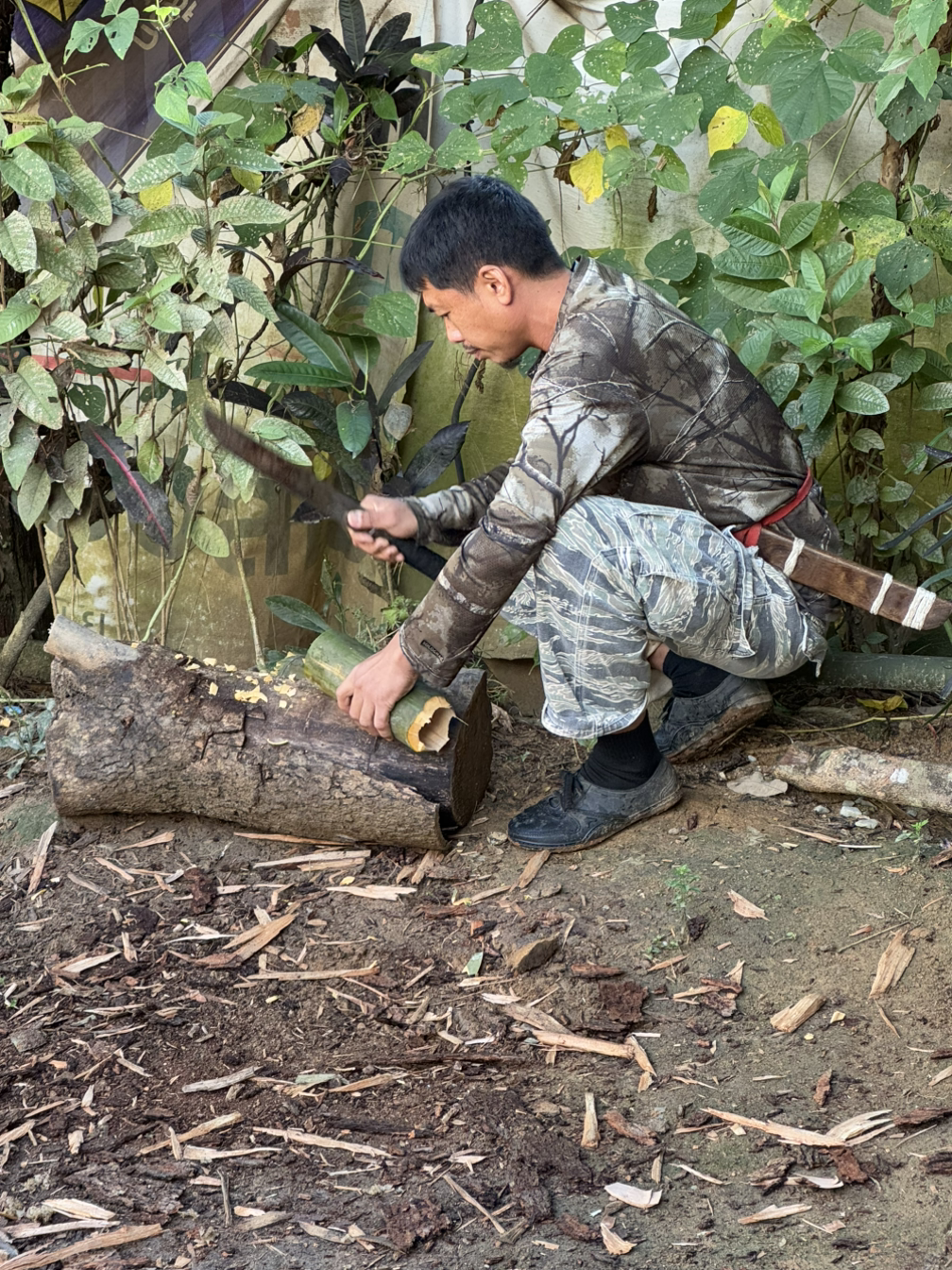 라후족 마을로 넘어와 간단히 차를 마시고 다른 데서 합류한 투어 여행객과 함께 점심을 만들어 먹기로 했다. 점심을 먹기 위해 필요한 도구들을 직접 대나무로 만든다. 대나무 젓가락, 숟가락, 컵, 그릇, 찜통 등 슥슥 대나무를 잘라서 아주 능숙하게 만들어주는데 그 매력에 푹 빠져버렸다. 야생 바나나는 쫀득하고 파인애플은 아삭한 식감이 독특했다. 베지테리언이라고 하니 따로 누들수프를 끓여줘서 맛있게 먹었다.