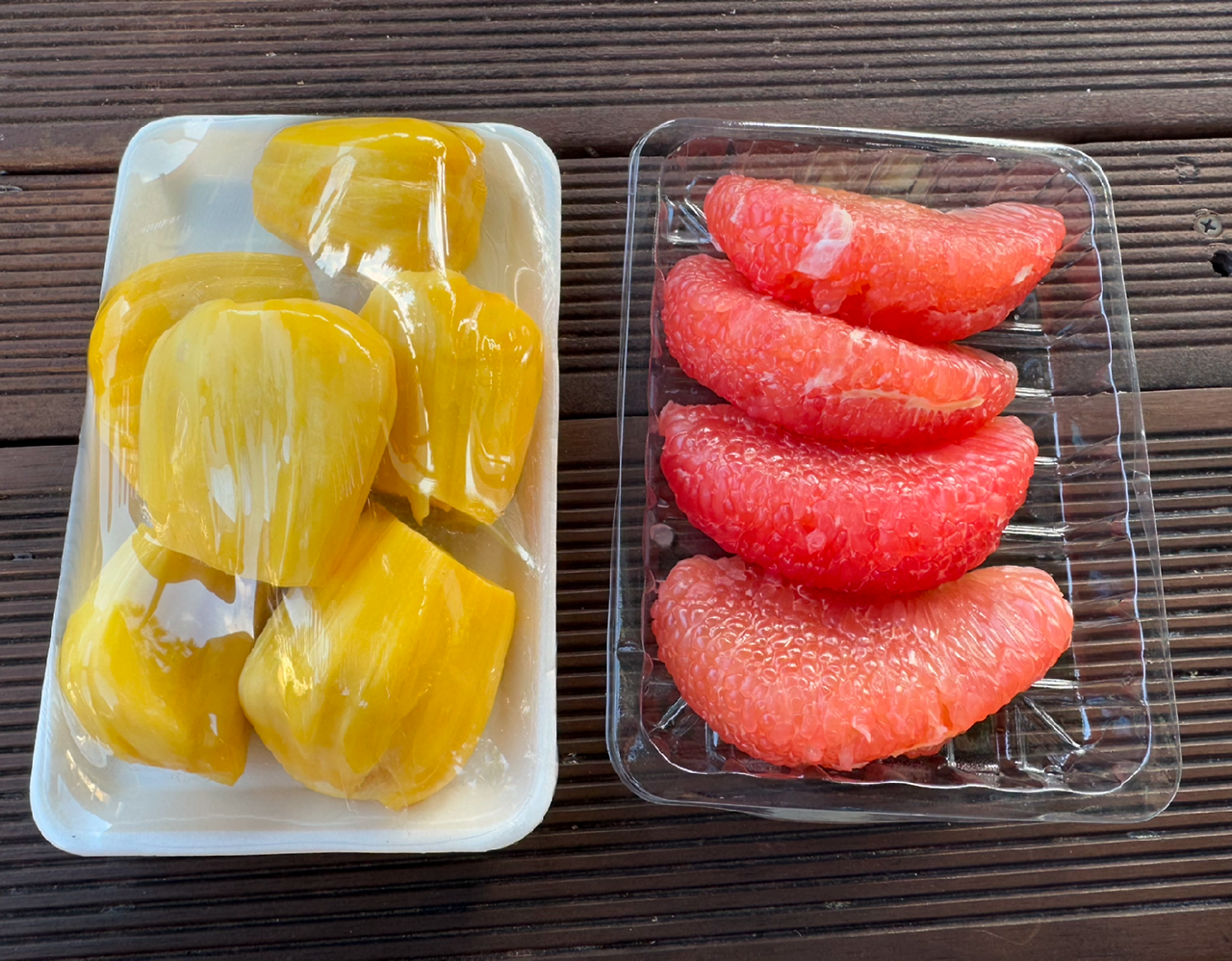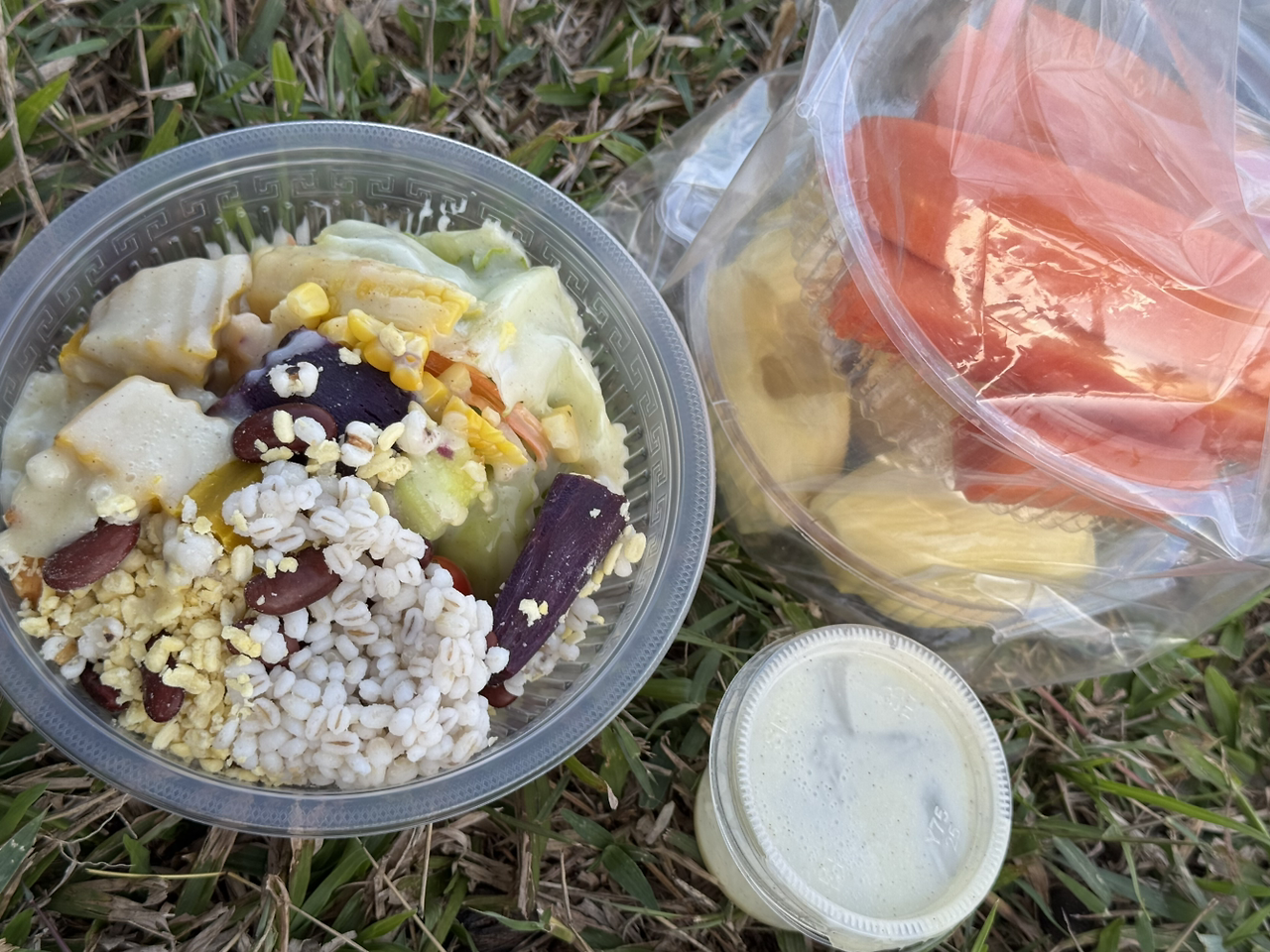 아침마다 시장에 다니며 과일을 사 온다. 팩에 든 과일은 걸어 다니면서 바로 먹는다. 숙소에서 과일을 자르기가 어렵기도 하고 놔두면 개미가 꼬여서 잘라 놓은 과일을 주로 산다. 자몽 같은 식감에 좀 더 단맛이 나는 새콤달콤한 포멜로, 바닐라와 두리안 같은 맛이 나는 오묘하고 달콤한 잭프룻, 시원 달달한 용과, 커피맛이 은은하게 나는 파파야... 주로 겨울이 제철인 과일들을 사 먹으니 저렴하고 맛이 좋았다.