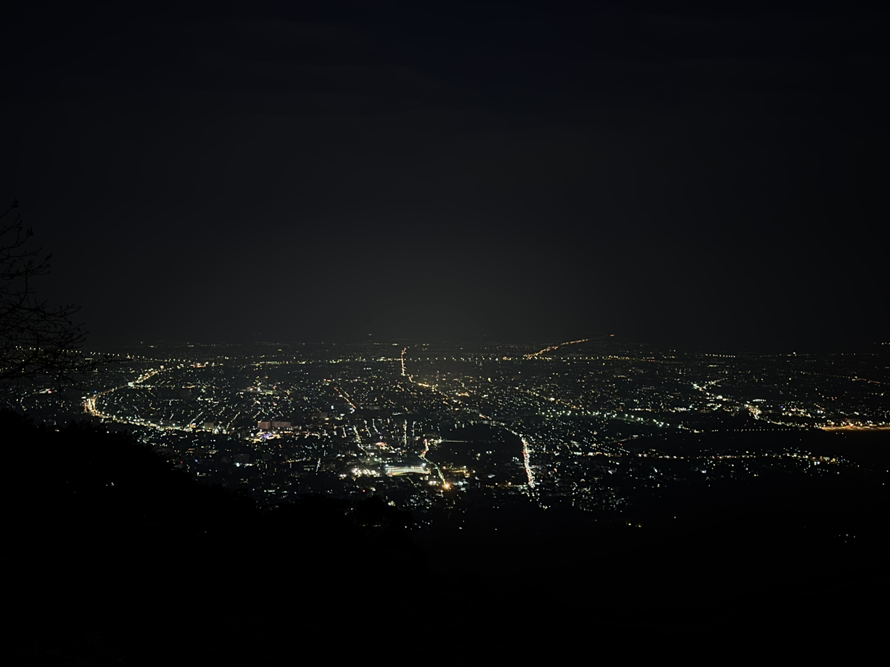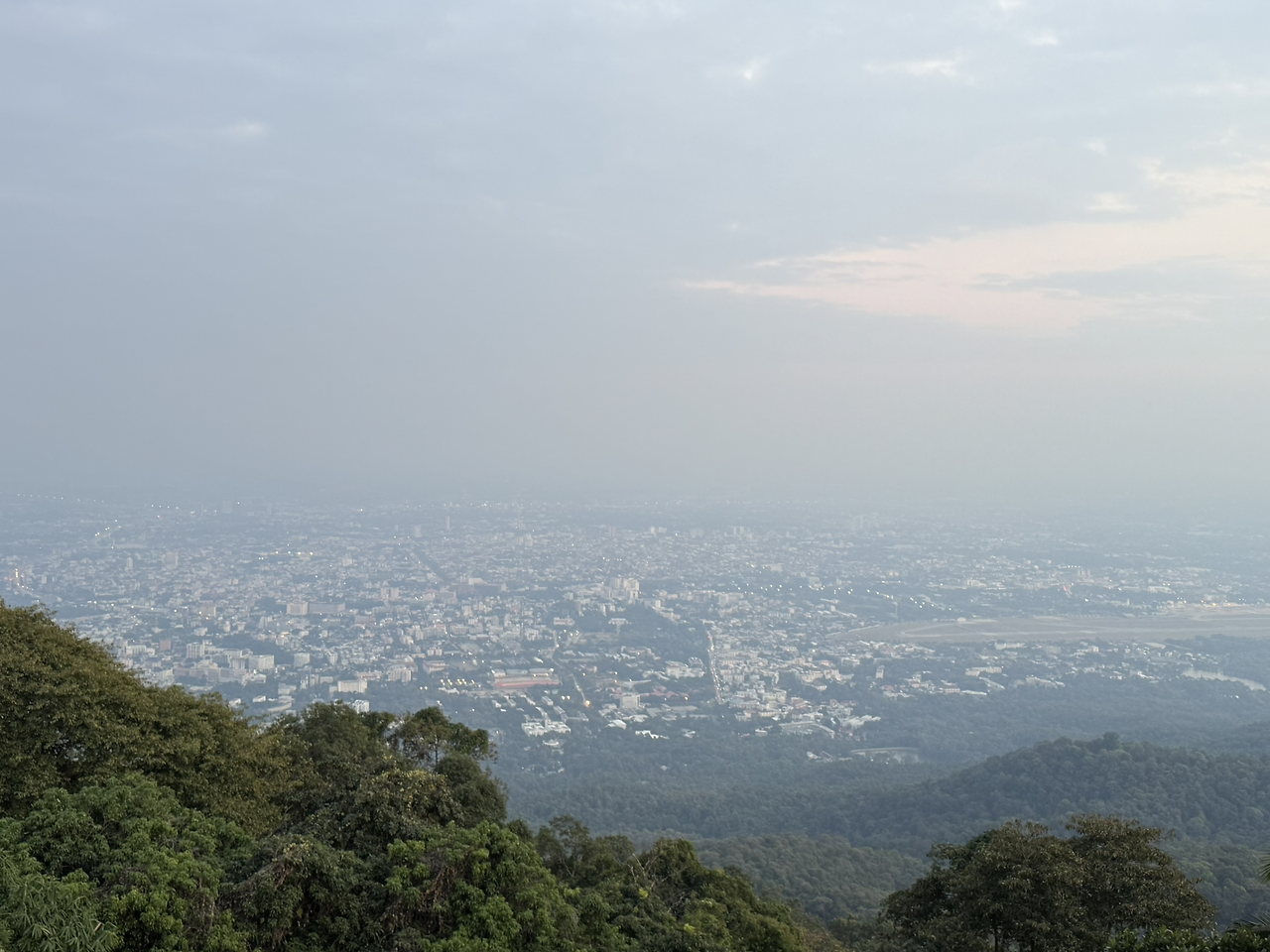 숙소에 짐을 풀고 치앙마이 대학교로 향했다. 치앙마이 대학교 정문 근처에서 도이 수텝 가는 썽태우를 탔다. 6명이 모이면 1인당 150바트를 내고 왕복으로 다녀올 수 있다. 치앙마이에 있던 둘째 날 도이 수텝 사원을 가려고 했는데 비가 너무 많이 오는 바람에 썽태우를 타고 갈 사람들이 모이지 않아 그냥 포기하고 돌아갔었다. 이번에는 운 좋게도 사람들이 모여 함께 이동했다. 일몰 무렵이라 해가 지는 것과 야경을 동시에 볼 수 있었다.