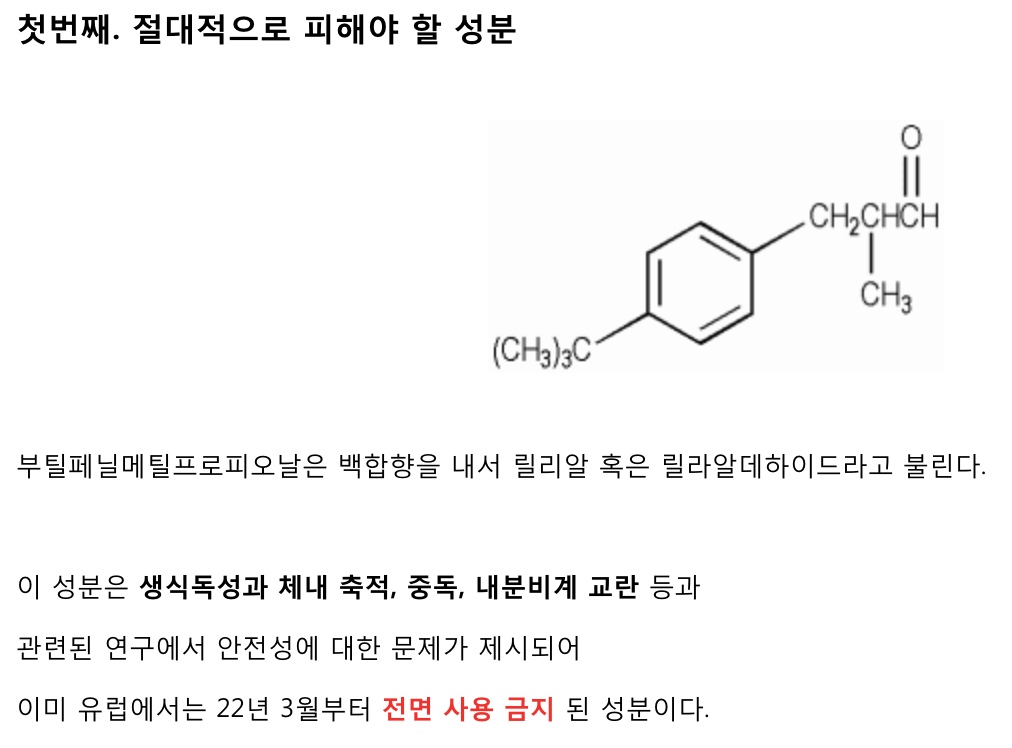 신뢰도를 할 수는 없지만, 일단 해당 링크를 스크롤하다가 '절대적으로 피해야 할 성분'에서 딱 멈췄습니다.