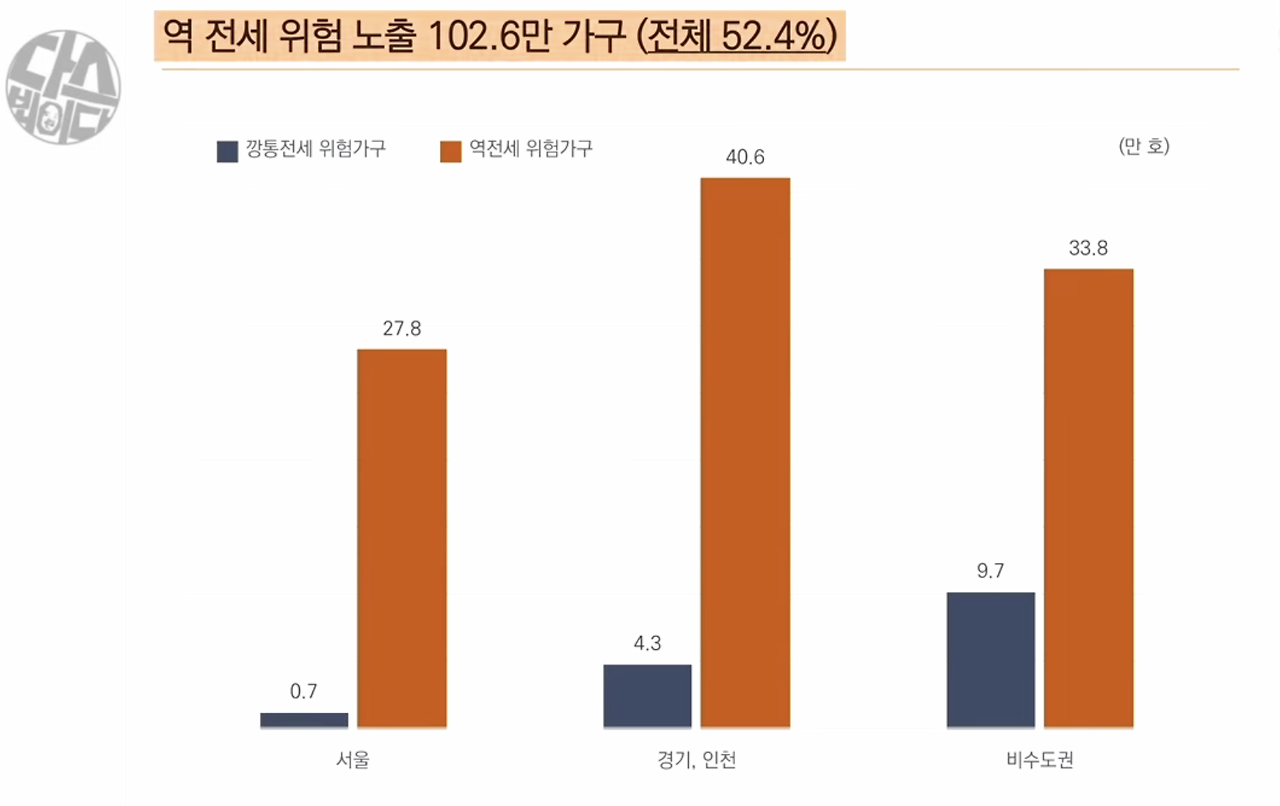 개인적으로는 전세 위험과 무관해서 솔직히 공감을 크게 하지는 못 했지만, 아래 그래프에서 52.4%에서 빠진 상대적으로 안전한 전세는 무엇인지 이광수 님이 묻는 질문에서 저의 무지를 확인했습니다. 저만 모르는 내용은 아닐 듯했습니다. 임대차보호법의 효력이 이런 일들인데, 국회에서 하는 이런 법안에 대한 홍보는 약하고 국회의원은 매일 싸우는 이미지만 비치는 듯합니다.