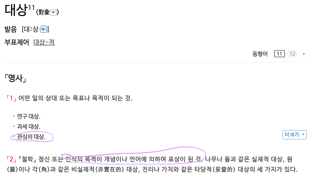 객체는 대상이라는 말로 치환해도 그 의미가 크게 훼손되지는 않습니다. 표준국어대사전에서 '대상'의 뜻을 찾아보겠습니다.