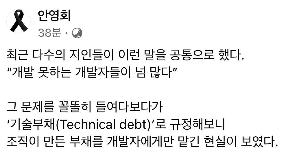 오호... 페벗 님의 글이 기술 부채 대응에 대한 영감을 줄 수 있을까요?