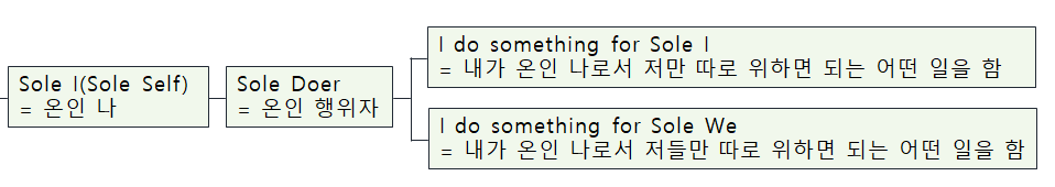 내가 나로서 벌이는 모든 일은 <내>가 위하고자 하는 <나>에 바탕을 두고 있다. 나는 <내>가 위하고자 하는 <나>를 줏대로 삼아서, 나에게 일어나는 모든 것을 그것에 맞도록 거느리고 다스린다. 이러니 나는 내가 누구인지 알려면 <내>가 위하고자 하는 <나>에 대해서 알아야 한다.