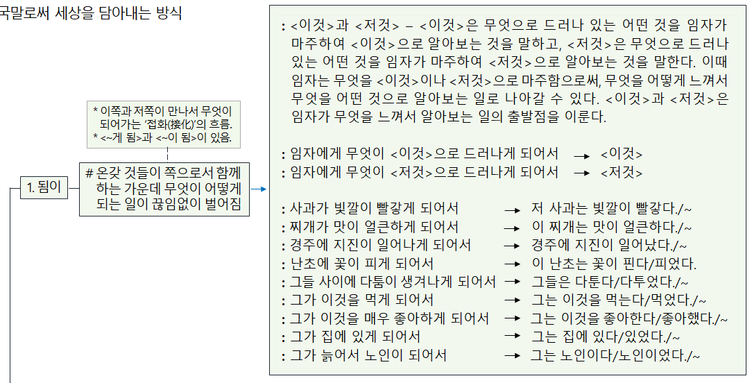 지난 글에 이어 주말에 최봉영 선생님께 받은 도식 풀이로 글을 씁니다. 한국말과 달리 '있음'부터 시작합니다.