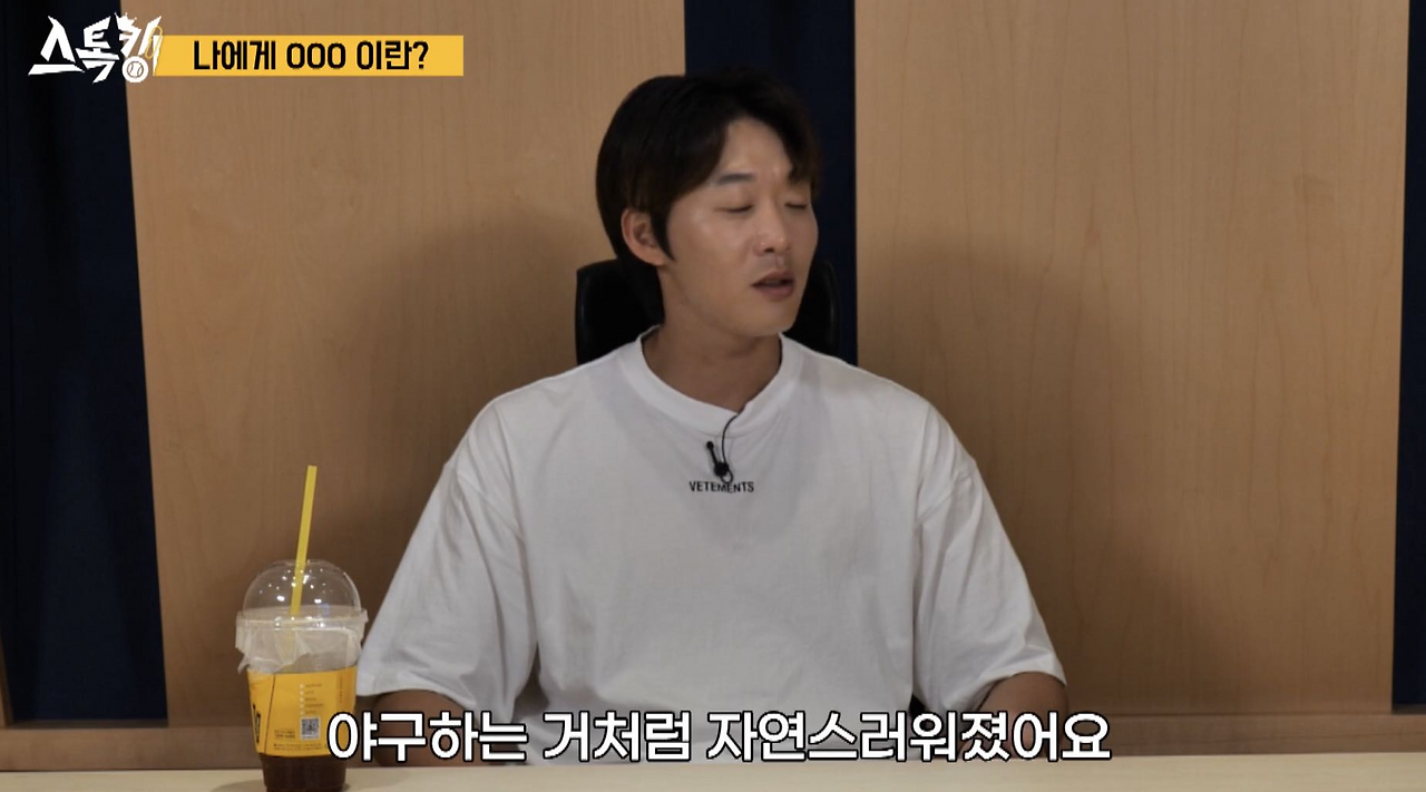 처음에는 남들의 시선 때문에 힘들었지만, 결국 '야구하는 거처럼 자연스러워졌다'라는 말이 바로 그것입니다.