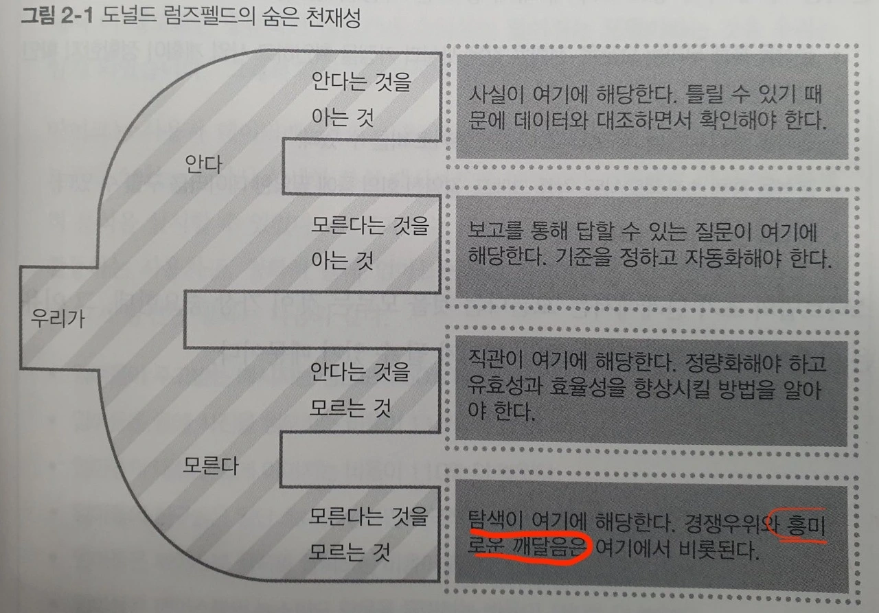저의 흥분(?) 상태를 이해하는 과정에서 럼즈펠드의 틀을 찾았습니다. 이런 '무지'를 깨달으면 '흥미로운 깨달음'을 느낄(?) 수 있습니다.