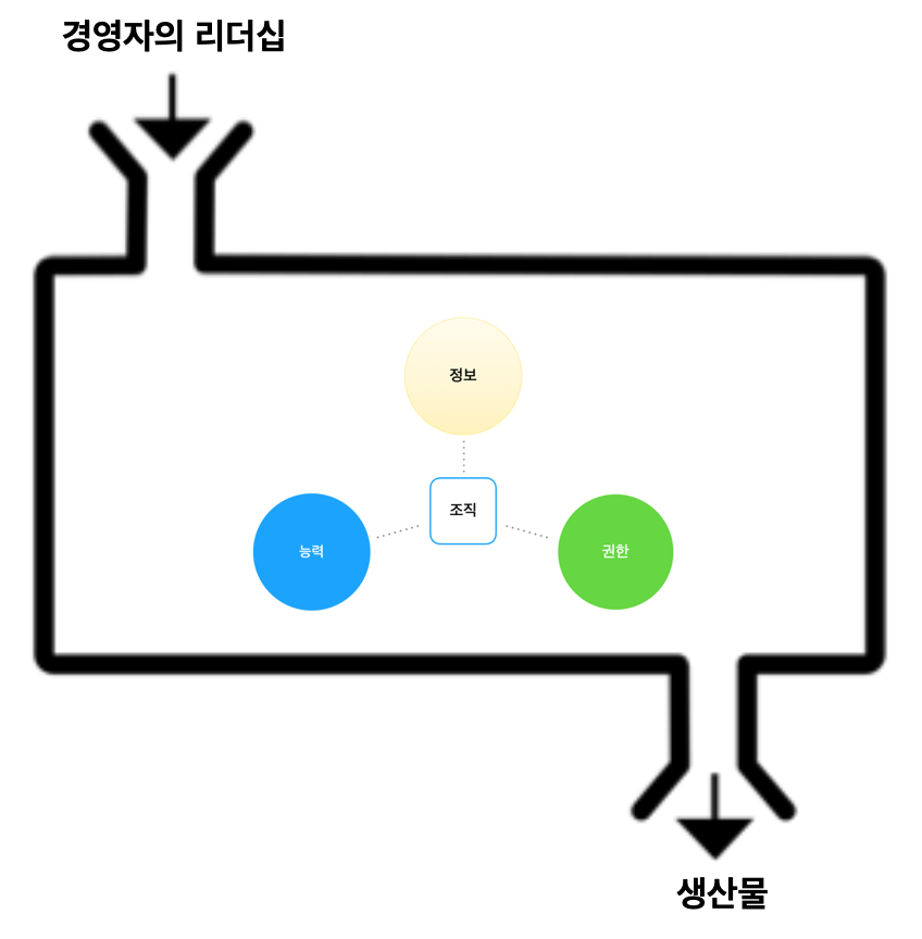 하지만, 함수 안에 그린 그림은 같은 달 지인과 대화하며 쓴 <건강한 조직이 만들어지는 배경>에서 만들어진 제 창작물입니다. 조직을 개념화한 것인데, 드러커의 표현과 연결하려고 들면 '자원 그 자체'와 연결성을 따져 보아야 합니다. 설비나 소프트웨어 등도 시스템을 이루며 조직으로 작용할 수 있지만, 여기서는 생각을 단순하게 하기 위해 사람(인적 자원)만 다루겠습니다.