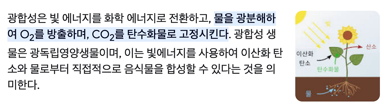 또한, 지구에 사는 생물들의 에너지 원천은 태양이라고 알려져 있습니다. 광합성의 결과로 식물과 식물에서 비롯한 먹이사슬을 구성하는 동물들이 살아가죠.