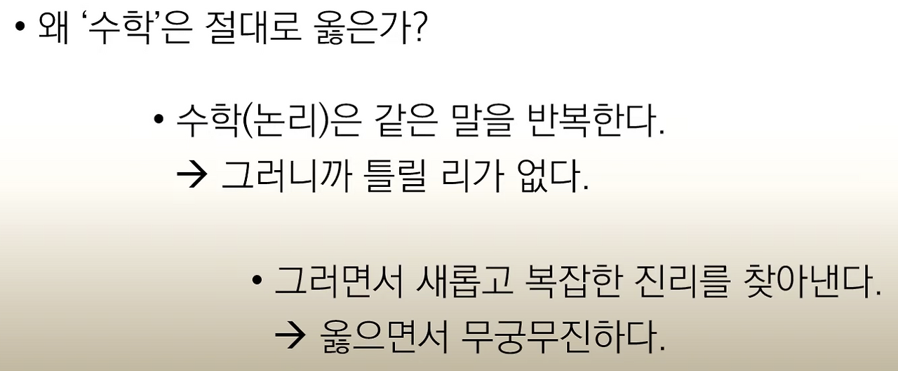그런 직후에 '수학'은 절대로 옳다는 주장을 보니 묘한 기분이 들었습니다.