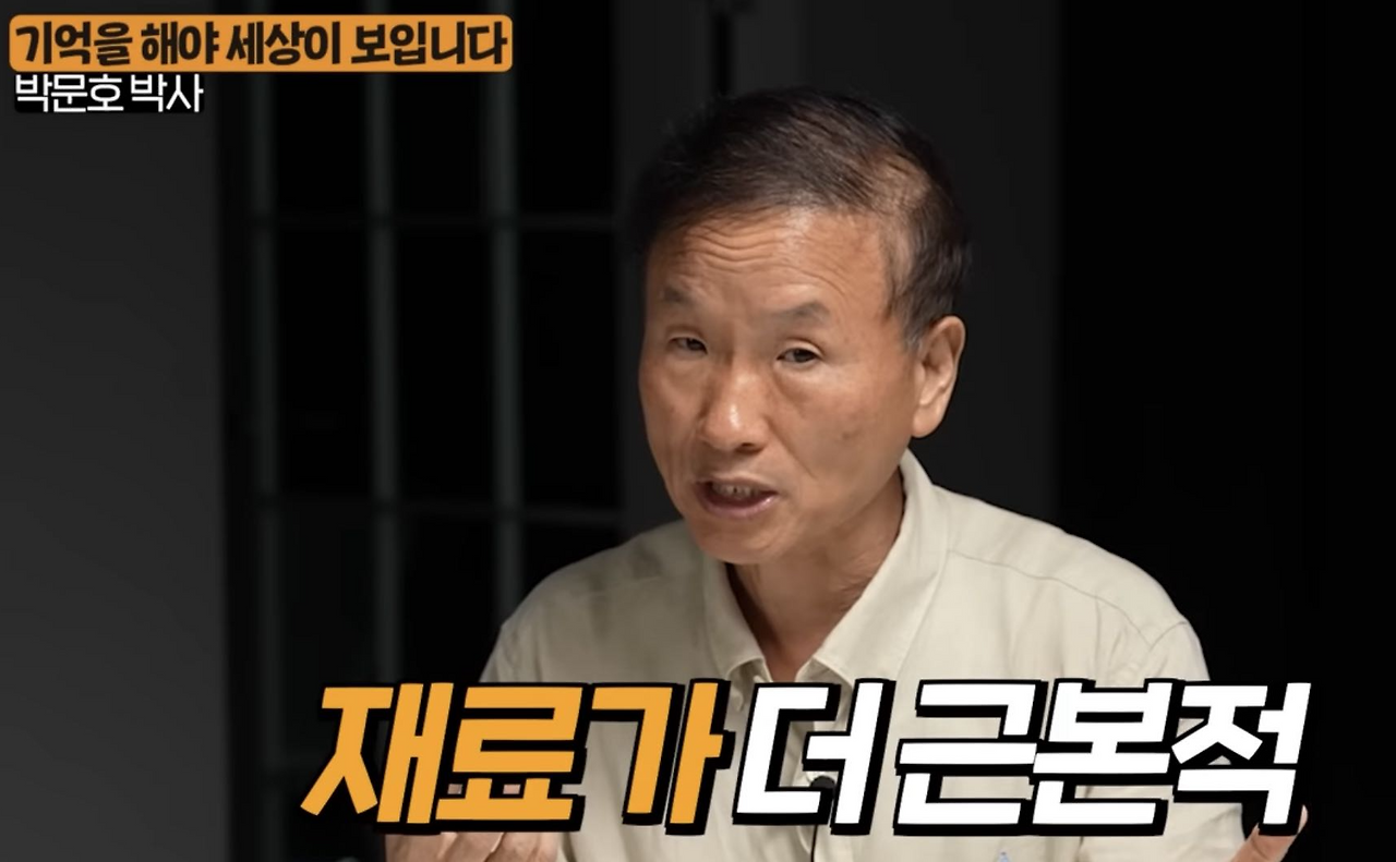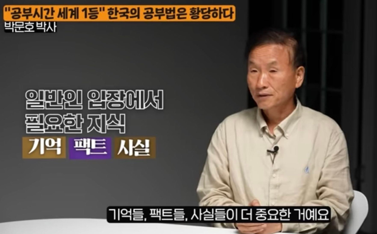 한편, 영상에서 13분 18초에서 요리보다 재료가 더 근본적이라는 설명을 합니다. 앞선 글에서 언급했듯이 박문호 박사님의 우리나라 공교육이 근본적으로 잘못되어 있다고 주장하는데, 재료가 되는 기억은 유도하지 않고 요리법만 과하게 가르쳤다고 주장합니다.