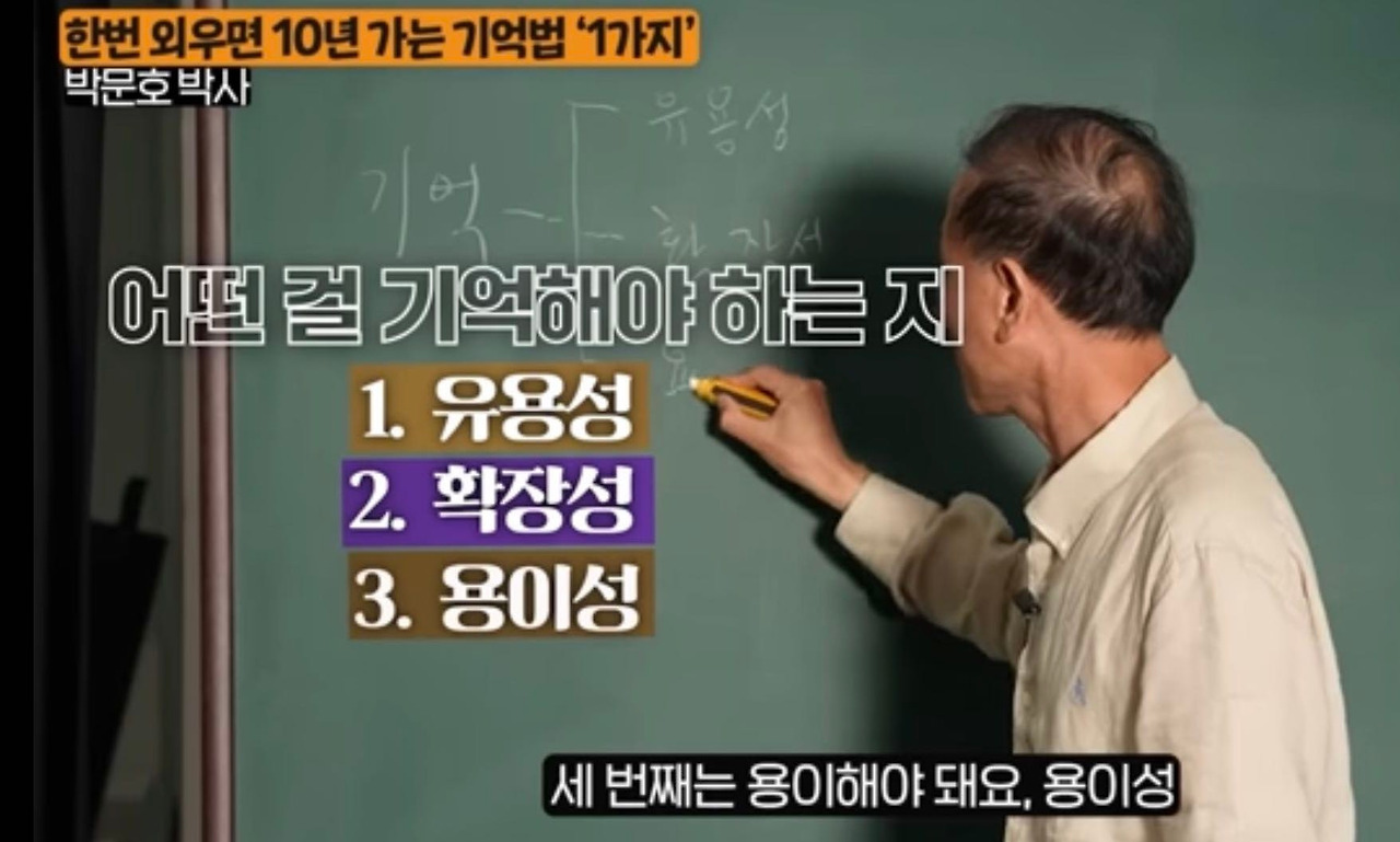 마지막으로 박사님은 기억을 쉽게 하기 위한 세 가지 비결을 설명합니다. 첫 번째는 유용성이 있는 것을 기억하라고 합니다.