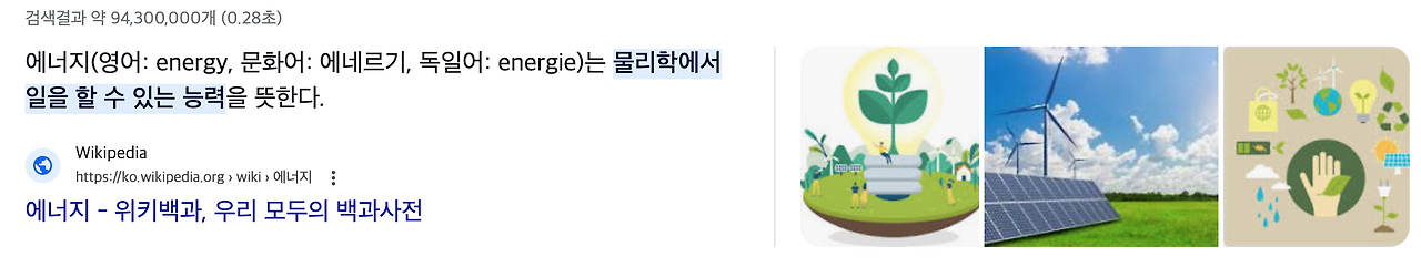 한편, 생명력을 외부에서 받을 수 있기 때문에 에너지를 함께 떠올렸습니다. 에너지 검색 결과는 좀 다른 인상을 줍니다.