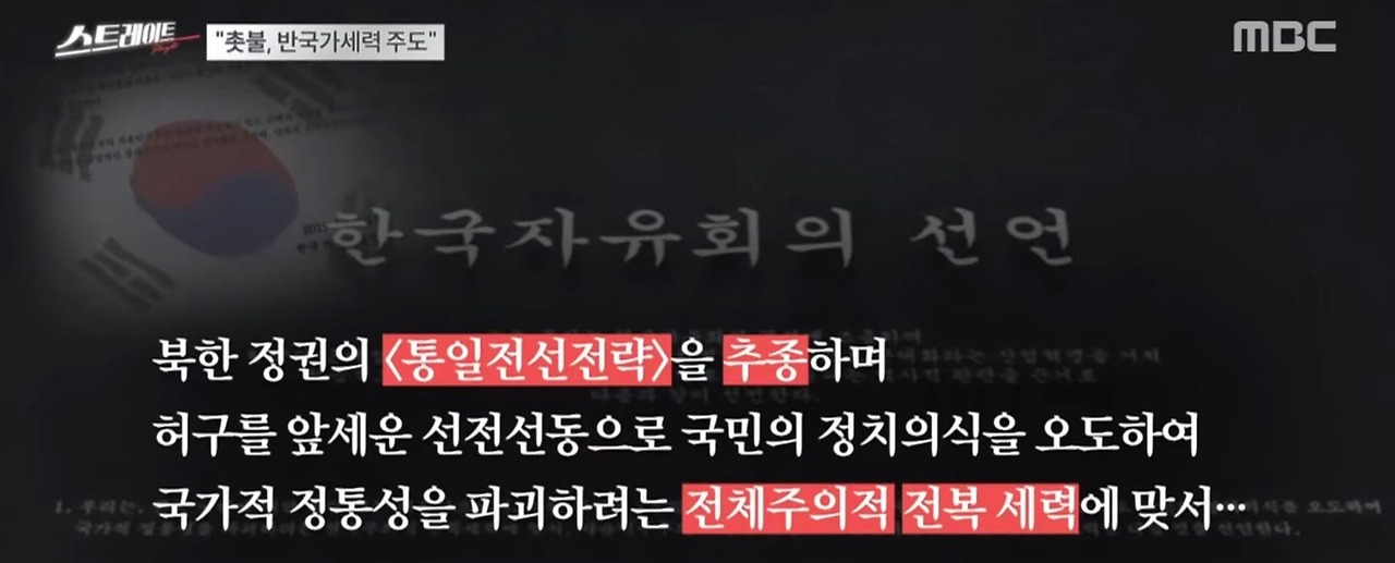 그런데, 대통령이 말하는 자유는 전혀 납득할 수 없습니다. 자유를 말하면서 자신이 말하는 이념이 올바르다고 강조하고 생각이 다른 국민을 모조리 배격합니다. 이런 사고 체계에서 말하는 자유가 무엇인지 추측이 불가능한데, 어제 우연히 유튜브 추천으로 본 스트레이트 영상을 보면 추정이 가능합니다.