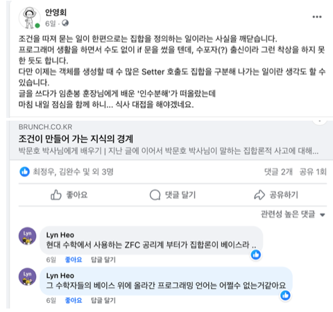 이 역시 박문호 박사님 영상에서 배운 바와 시너지를 내는 장면입니다. 저 역시 클래스 기반 사고에 굉장히 비판적이었습니다. 하지만, '왜 그렇게 할까?' 생각해 보면 자바 같은 언어들이 제공하는 틀에서부터 생각을 시작하는 이유일 수 있습니다. <집합론적 사고는 여러 가지를 동시에 해결하는 것이다>를 쓸 때, 그리고 <조건이 만들어 가는 지식의 경계>와 그 글에 뒤따른 페친님의 댓글 등을 보면 프로그래밍 언어의 유산 속에 클래스를 강제하는 힘들이 있습니다.
