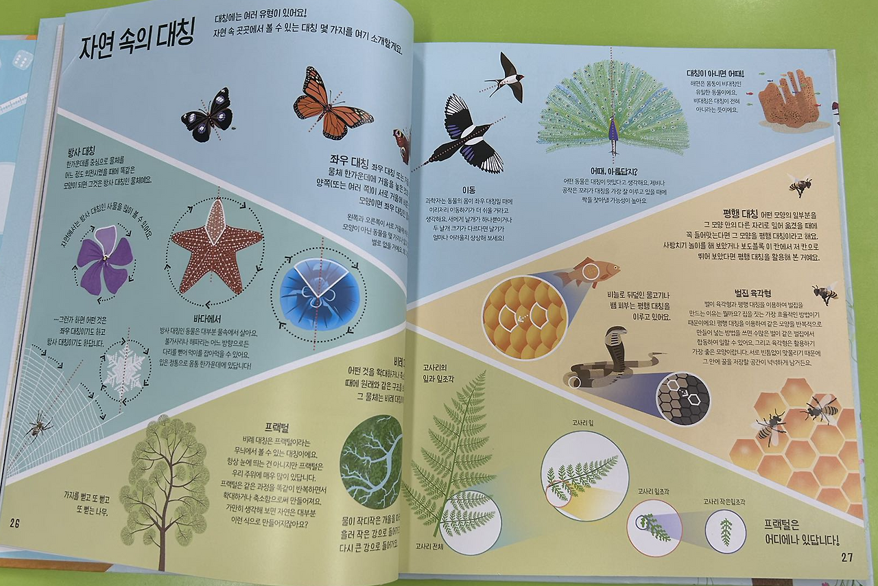 내용이 꽤 길어서 여기서 끊고 연재로 이어가려고 합니다. 여기까지가 영상 21분경이네요. 박문호 박사님 설명과 직접 연관성은 없지만, 아이들 도서관에서 발견한 '자연 속의 대칭' 장면을 함께 공유합니다.
