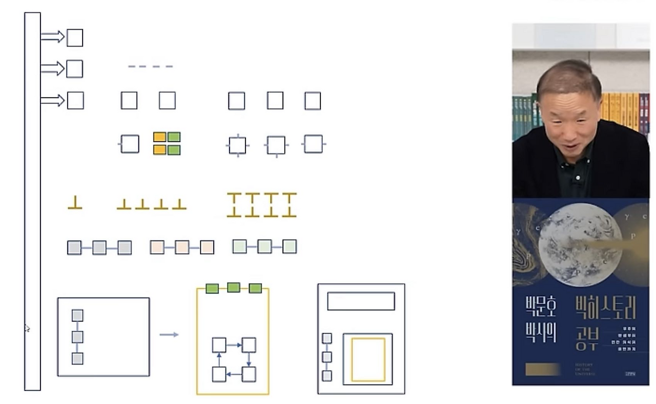 박문호 박사님은 강의 듣는 것은 공부의 초기 단계이고, 90%가 각자가 손으로 해 보는 일이라고 강조합니다. 아래 노트를 보면 박문호 박사님이 앞서 설명한 순서화를 통해 맥락을 쭉 파악하는 활동이 보입니다.