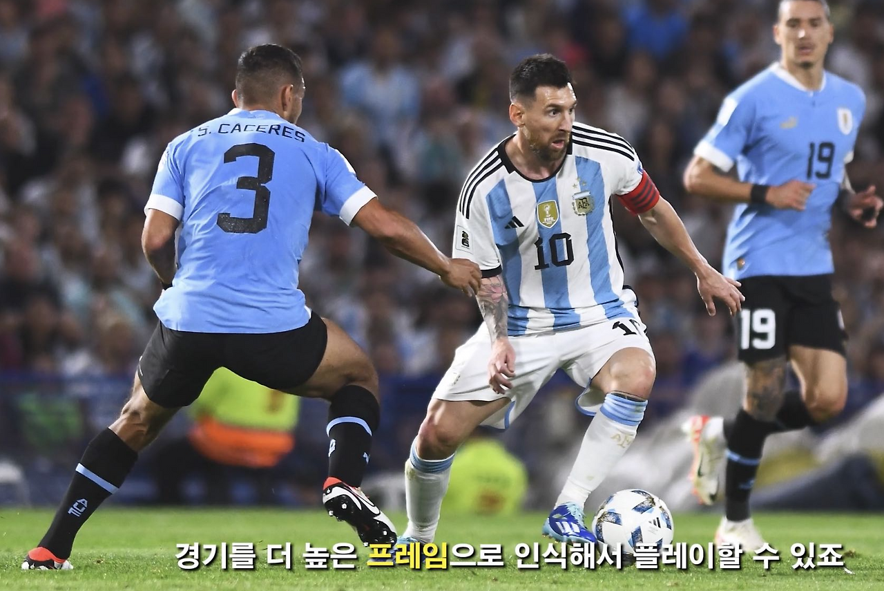두 번째로 흥미를 불러일으킨 개념은 '높은 프레임'인데, 이는 메시의 잔발 드리블을 연상시키는 사진과 함께 등장했습니다.