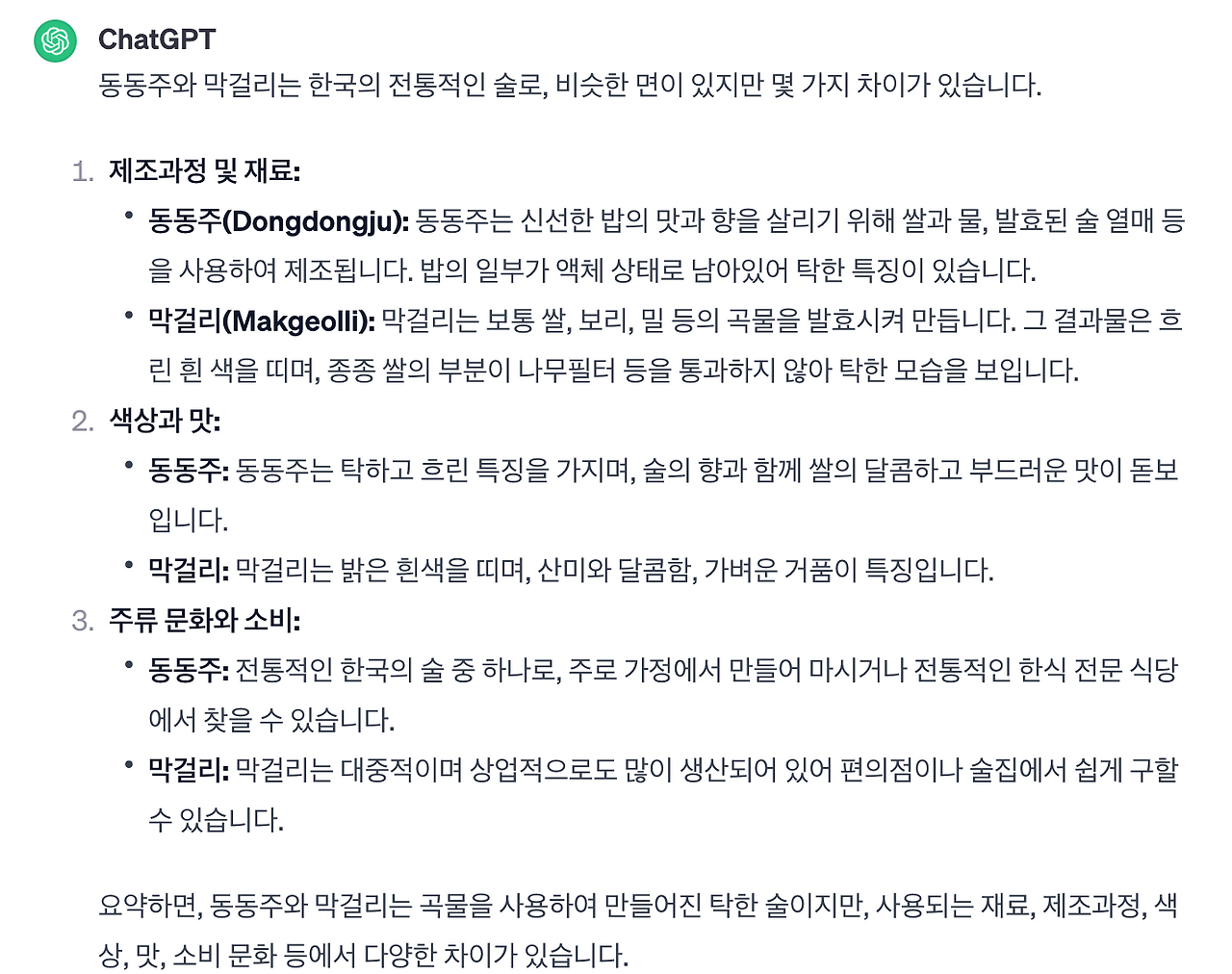 같은 질문을 ChatGPT 3.5에도 해 보았습니다. 안 하면 아쉬우니까.